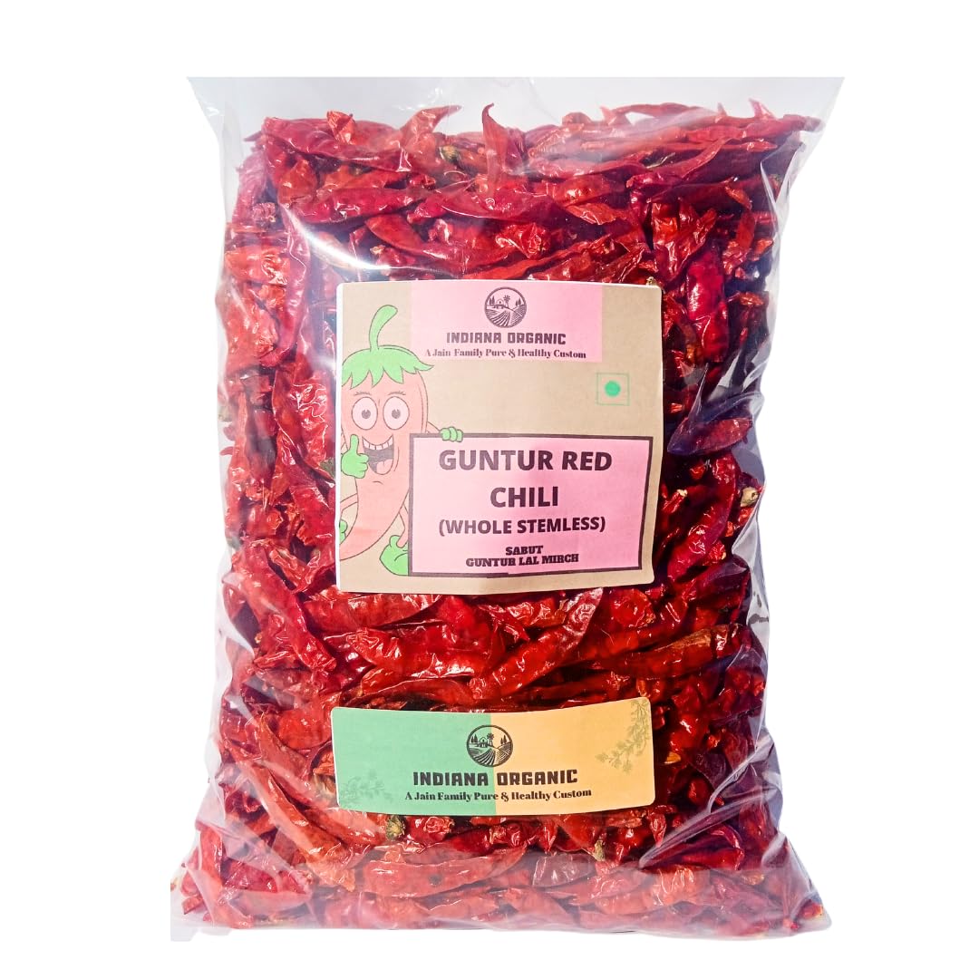 • Indiana organic guntur red chillies whole stemless- 300 gram
