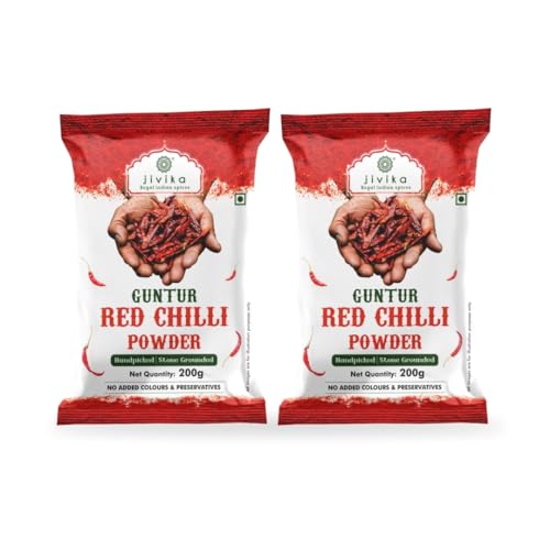 Jivika Guntur Red Chilli Powder | Lal Mirchi Powder | Red Hot Chilli | No added Flavours and Colours | 200g (Pack Of 2)