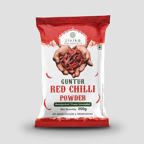 Jivika Red Chilli Powder meticulously crafted by Guntur farmers with a dedication to purity. We handpick only the finest chillies to ensure the perfect blend of spice that enhances the flavor of your dish. Our commitment to quality extends further with no added colors preservatives or adulteration allowing you to experience the essence of authenticity with every sprinkle.