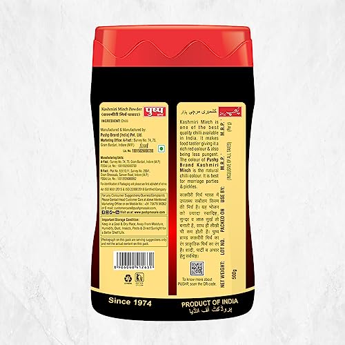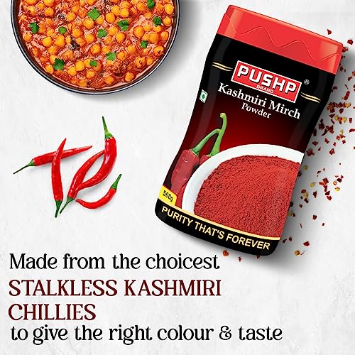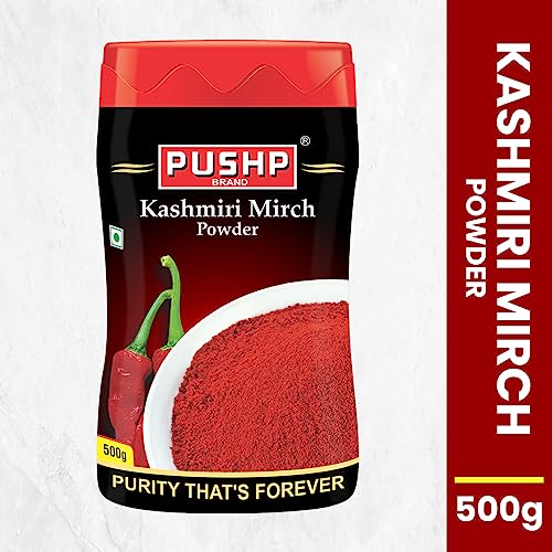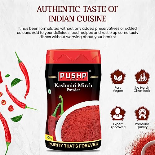 Pushp Brand Kashmiri Red Chilli Powder 500g Jar (Pack of 1)