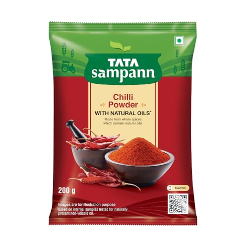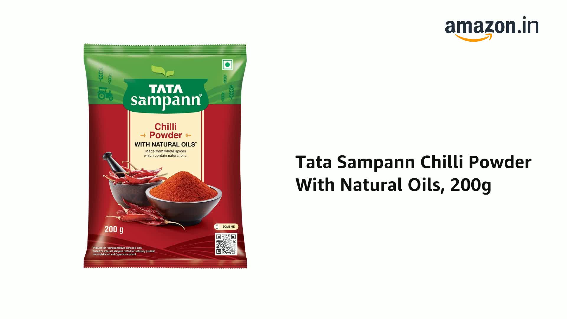 Tata Sampanns range of spices are crafted to satisfy your taste buds. Tata Sampann sources all its spices & masalas from the most authentic places i.e. chillies from Guntur Andhra Pradesh coriander powder from Kumbhraj Madhya Pradesh kasuri methi from Nagaur and turmeric from Salem Tamil Nadu. Tata Sampann Chilli Powder is sourced from Guntur region in Andhra Pradesh which is famous for its chillies having full bodied taste and hotness! Chilli has an active ingredient called capsaicin. These are made from whole spices that contain natural oils. The chilli powder can be teamed up with pulao greenies baked corn or pasta the choice is yours! Storage Instructions: Store in a cool and dry place. *Based on internal samples tested for naturally present non-volatile oil and capsaicin content.