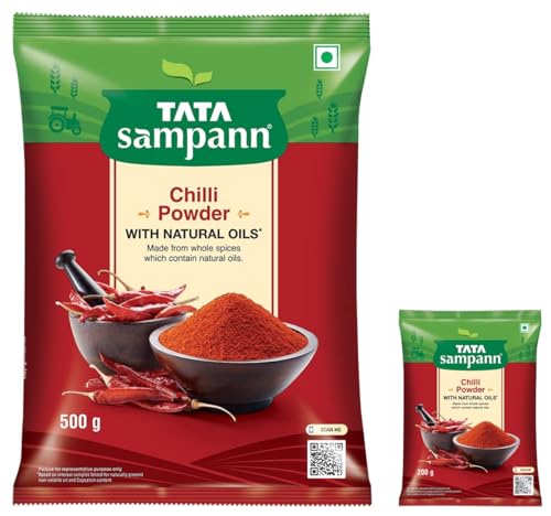Tata Sampann Chilli Powder With Natural Oils 500gTata Sampann's range of spices are crafted not just to satisfy your taste buds but also to take care of your health. Made from whole spices that contain natural oils red chilli has an active ingredient called capsaicin. With no added preservatives this chilli powder can be teamed up with pulao greenies baked corn or pasta the choice is yours! Storage Instructions: Store in a cool and dry place.Tata Sampann Chilli Powder With Natural Oils 200gTata Sampann's range of spices are crafted not just to satisfy your taste buds but also to take care of your health. Made from whole spices that contain natural oils red chilli has an active ingredient called capsaicin. With no added preservatives this chilli powder can be teamed up with pulao greenies baked corn or pasta the choice is yours! Storage Instructions: Store in a cool and dry place.