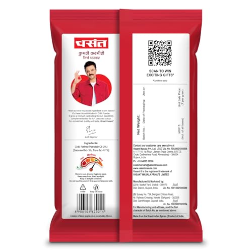 VASANT Kumthi Kashmiri Chilli Powder 400Gm Combo - Pack of 2 | Each 200Gm | Kashmiri Chilli Powder Kumthi Chilli - No added Colours Flavours and Chemical | Combo - Pack of 2