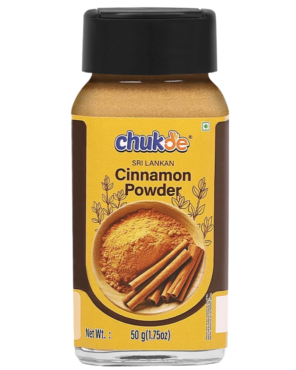 Chukde - Sri lankan Cinnamon Powder - Dalchini Powder In Glass Jar - Sourced From Sri Lanka - Powdered Spices - 50 Gm