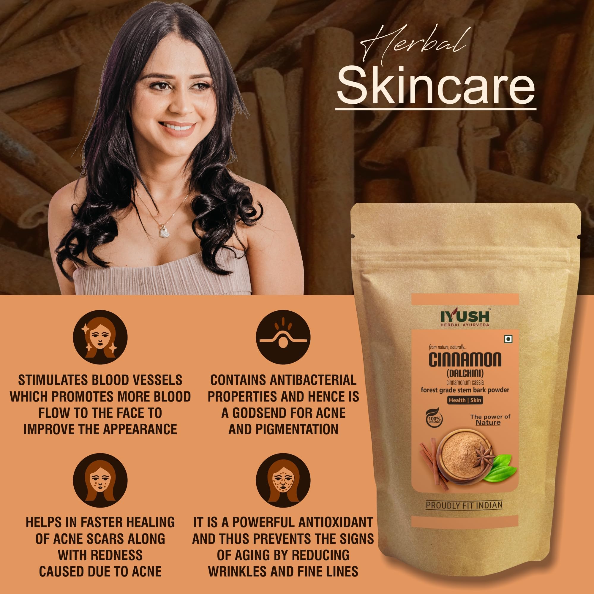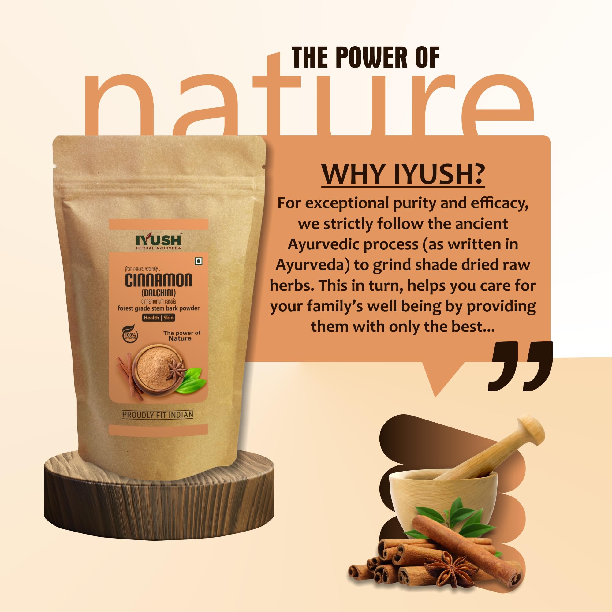 IYUSH Herbal Ayurveda Organic Cinnamon Powder 400gm | Dalchini Powder Organic | Cinnamon Powder Organic | Ceylon Cinnamon Stick Powder | Ceylon Cinnamon Powder | Dalchini Cinnamon Powder |