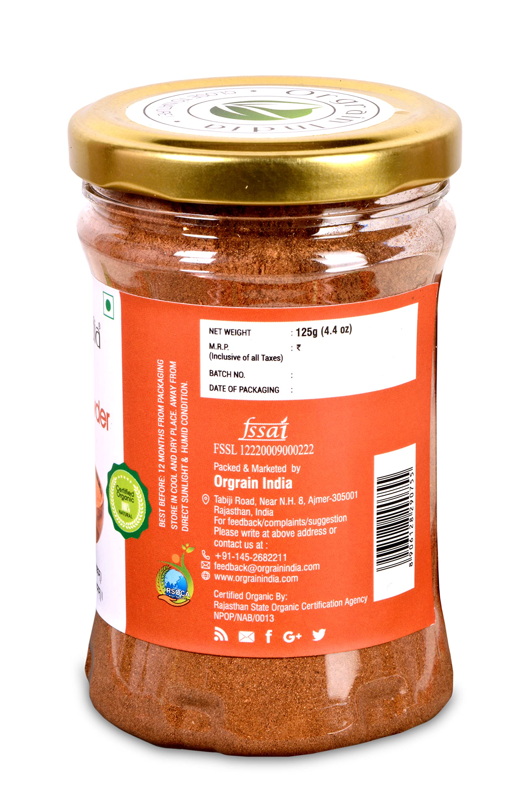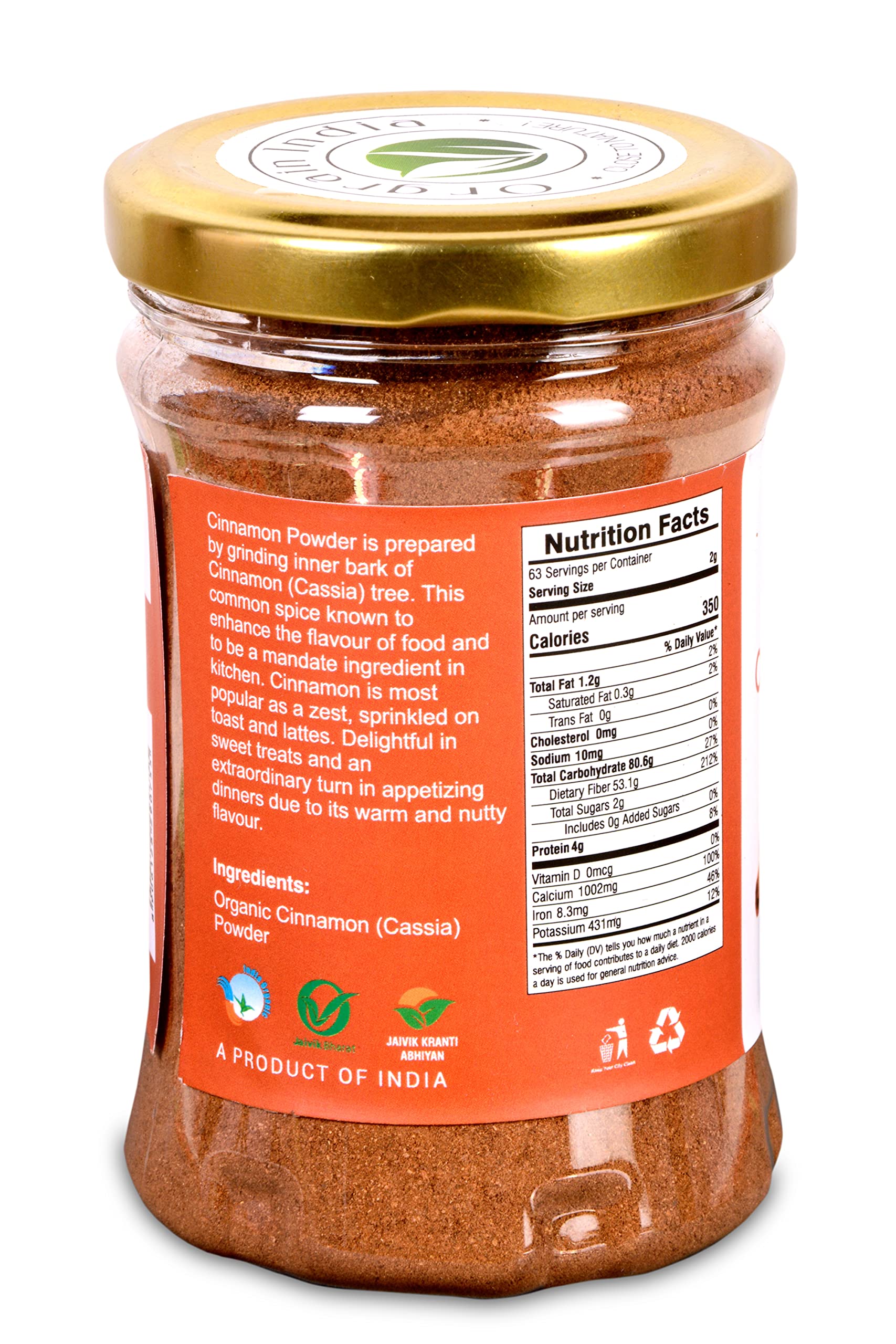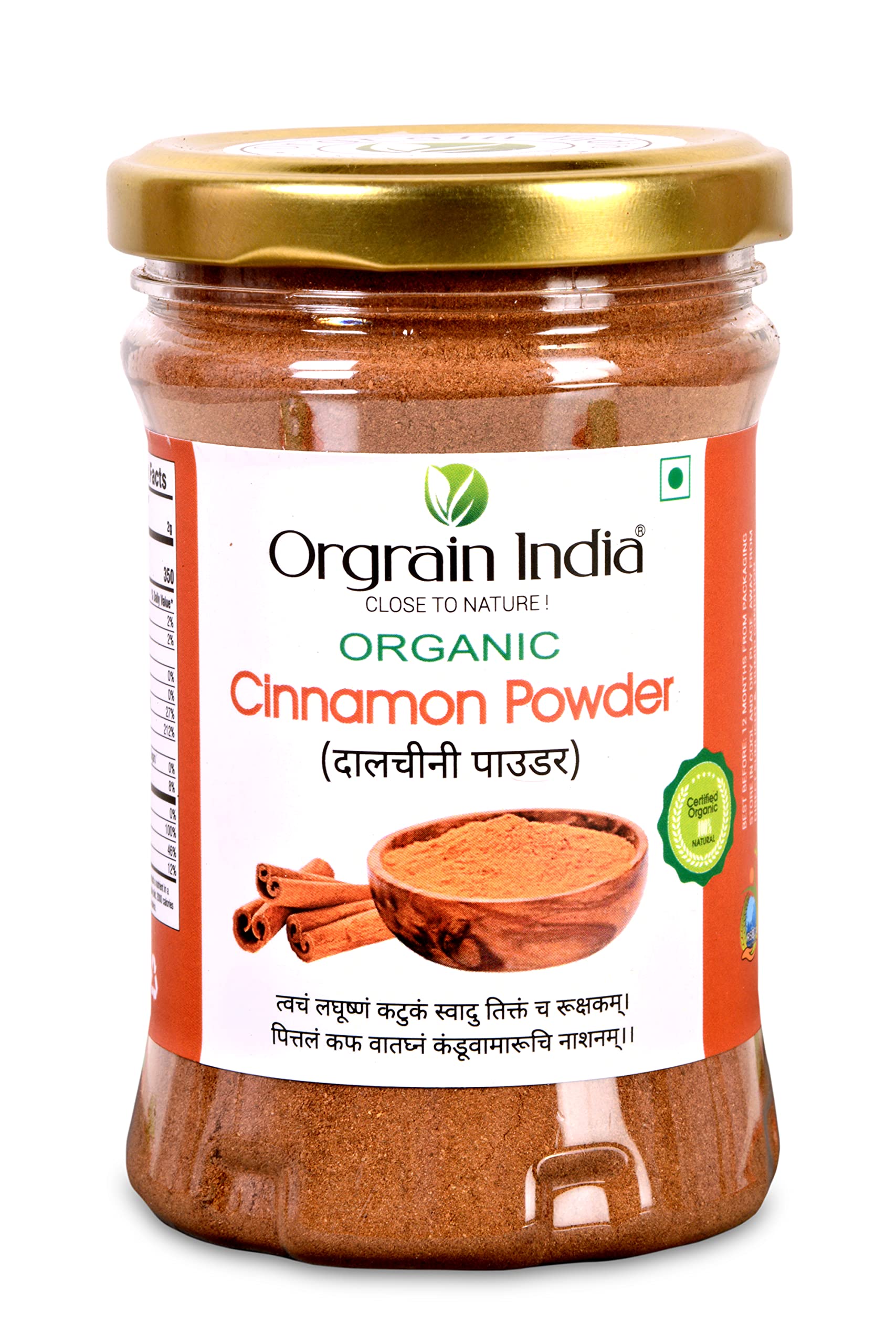 Orgrain India Organic Cinnamon Powder 125 grams | Dalchini For Weight Loss | Rich Source of Calcium Iron & Protein