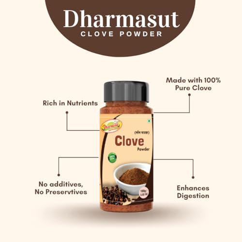 Dharmasut Clove Powder is made with 100% Natural and Pure clove. Clove Powder is also known as Laung Powder in many regions. Natural Clove powder is a spice that has been used for centuries. It is made from the buds of an evergreen tree. Clove powder has a sweet warm aroma and flavor similar to all spice. Cloves are popular in many different types of cuisine including Indian Middle Eastern Caribbean African and European cooking. They can be added whole to stews and curries or ground up into a paste. You can use clove powder while making flavor tea soups sauces and many Indian dishes. It is also used in the making of ayurvedic medicine and in home remedies for many diseases. Enhance the taste of your meals by adding Dharmasut Clove Powder.