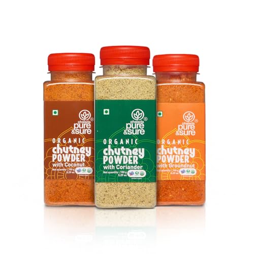 Pure & Sure Combo Pack of Organic Chutney Powder - Groundnut - 150Gms , Organic Chutney Powder - Coconut - 150Gms and Organic Chutney Powder - Coriander - 150Gms
