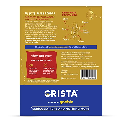 Hey! Its me Dhaniya Jeera Powder. Proud of: My secret ratio of Cumin and Coriander. Premium grade bold brownish-grey Cumin (Jeera) is sourced from the farms of Gujarat. Utmost care is taken in procuring sortex grade for this spice. Premium grade bold sweety-aromatic Coriander (Dhaniya) is sourced from the farms of Rajasthan. Utmost care is taken in procuring the right greenish-yellow colour and liter weight of the spice. Once sourced the spices are transported to the factory where the seeds are processed and cleaned before being freshly machine ground into a powder using a time-tested ratio of coriander and cumin passed down over generations. The whole spices are ground using our sophisticated hammer crushers and micro pulverisers. The final step is mixing in an automatic GMP blender to achieve the desired texture and consistency.