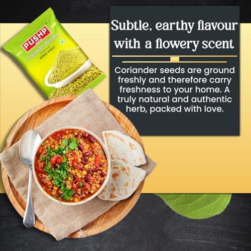 PRODUCT FEATURES:- Tasty and Good For Your Health. Premium Quality.Great value. Boost of antioxidants. Tastes better cooked. Meet all safety food standards. PRODUCT HIGHLIGHTS:- Ingredient:- coriander. No artificial color and preservatives:- Pushp products do not contain artificial flavors no preservatives and no harmful chemicals. Premium quality product:- All the Indian spices used in this product are of premium quality. We will never compromise with the quality of products. Hygienic packaging:- We always take care that you get the premium quality product and with less human interference. Important storage conditions in a cool & dry place away from moisture humidity dust insects pests & direct sunlight for a better shelf life.