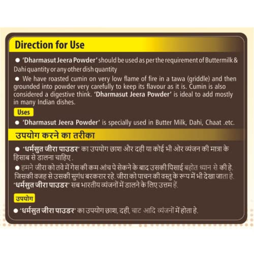 • Dharmasut Jeera Powder is specially used in Butter Milk Dahi Chaat.etc.