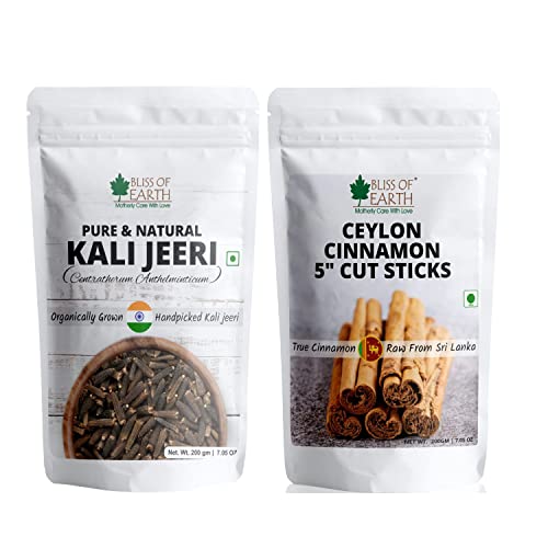 Bliss of Earth 200gm Kali Jeeri, Bitter Cumin, Kadwa Jeera &200gm Ceylon Cinnamon (Dalchini) 5" Cut Sticks Organic Good for Health