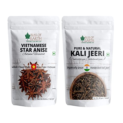 Bliss of Earth 200gm Kali Jeeri Bitter Cumin, Kadwa Jeera & 200gm Star Anise Whole spices, Chakra Phool,Organic Good for Health