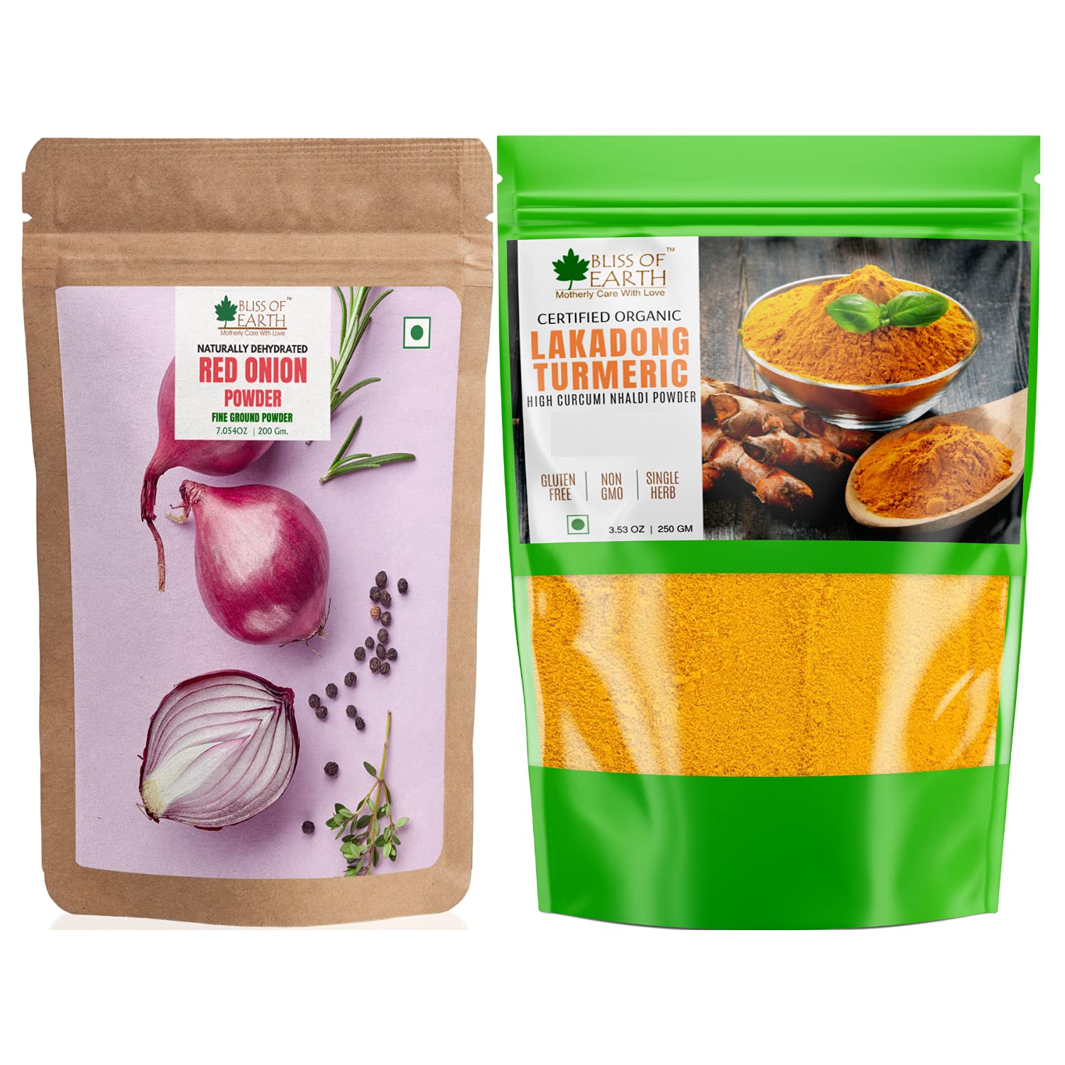 Bliss of Earth Natural Red Onion Powder is dehydrated ground onion that is most important culinary ingredients in every kitchen. Its characteristics strong flavour when raw makes it great addition on salad. Its sweet flavour when cooked is a key element for meats poultry seafood and all kind of side dishes. Bliss of Earth Lakadong Turmeric Powders offers unmatched health benefits due to the highest curcumin content of 6-8% among the traditional curcumin powders available in the market. Strong flavor and aromatic fragrance makes it one of the finest turmeric in the world.
