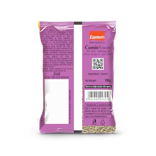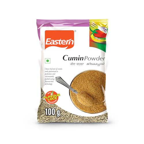 Eastern Cumin Powder is a versatile ingredient that can transform ordinary recipes into extraordinary culinary creations. Whether you're cooking Indian curries Mexican salsas Middle Eastern rice dishes or even roasted vegetables this spice brings a unique and robust flavour profile to your meals. The finely ground cumin seeds provide a smooth texture and allow for even distribution throughout your dishes ensuring every bite is infused with its enticing taste. One of the key features of Eastern Cumin Powder is its brown colour which adds a visually appealing element to your dishes. Along with its warm earthy flavour the slight sweetness of the cumin powder provides a delightful balance enhancing the overall taste experience. Whether you're a home cook or a professional chef this spice is a must-have in your kitchen allowing you to explore new dimensions of flavour in your culinary creations. Each pack of Cumin powder contains 100g of this exquisite spice providing you with an ample supply to explore its culinary possibilities. The packaging ensures the freshness and quality of the cumin powder allowing you to enjoy its flavours over time. Eastern a trusted brand in spices is available on Amazon With Eastern Cumin Powder you can enhance the taste of your favourite recipes experiment with new flavours and embark on a culinary journey like never before.