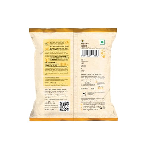 Organic Tattva, Organic Gluten Free Turmeric (Haldi) Powder - 100 Gram | Quality Indian Spice, High Curcumin Content Haldi Powder