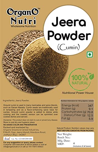 Cumin powder is a commonly used culinary spice. Cumin/ Jeera powder has an aromatic odor and a spicy and flavorful taste. The aromatic smell and specific taste of Cumin are due to the presence of volatile oil which is about 2 to 4%. sUpazon Cumin Powder is made from unadulterated Cumin which is cleaned and ground finely into powder which blends thoroughly with any of your recipe. It is a staple spice in certain stews soups and curries as it adds a warm and earthy feeling to the dishes. It is a good source of iron. On a hot summer day it is pure delight to have a glass full of buttermilk with a dash of cumin powder. Use it as a condiment in vegetables salads or use it to garnish dishes cumin powder is sure to give you an aromatic eating experience. It is very effective for digestive disorders. It helps control nausea diarrhoea morning sickness and stomach pain. Key benefits No pesticides or harmful chemicals Better nutrition rich in antioxidants Better taste Better ecology Sustainable -better planet for our children Safe food No water contamination Farmers better lives PRODUCT FEATURES:- Tasty and Good For Your Health. Premium Quality.Great value. Boost of antioxidants. Tastes better cooked. Meet all safety food standards.