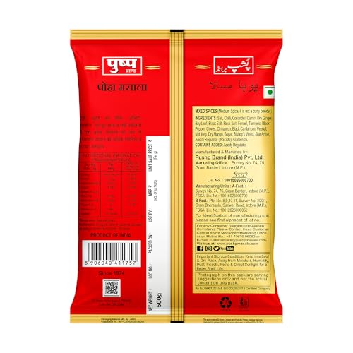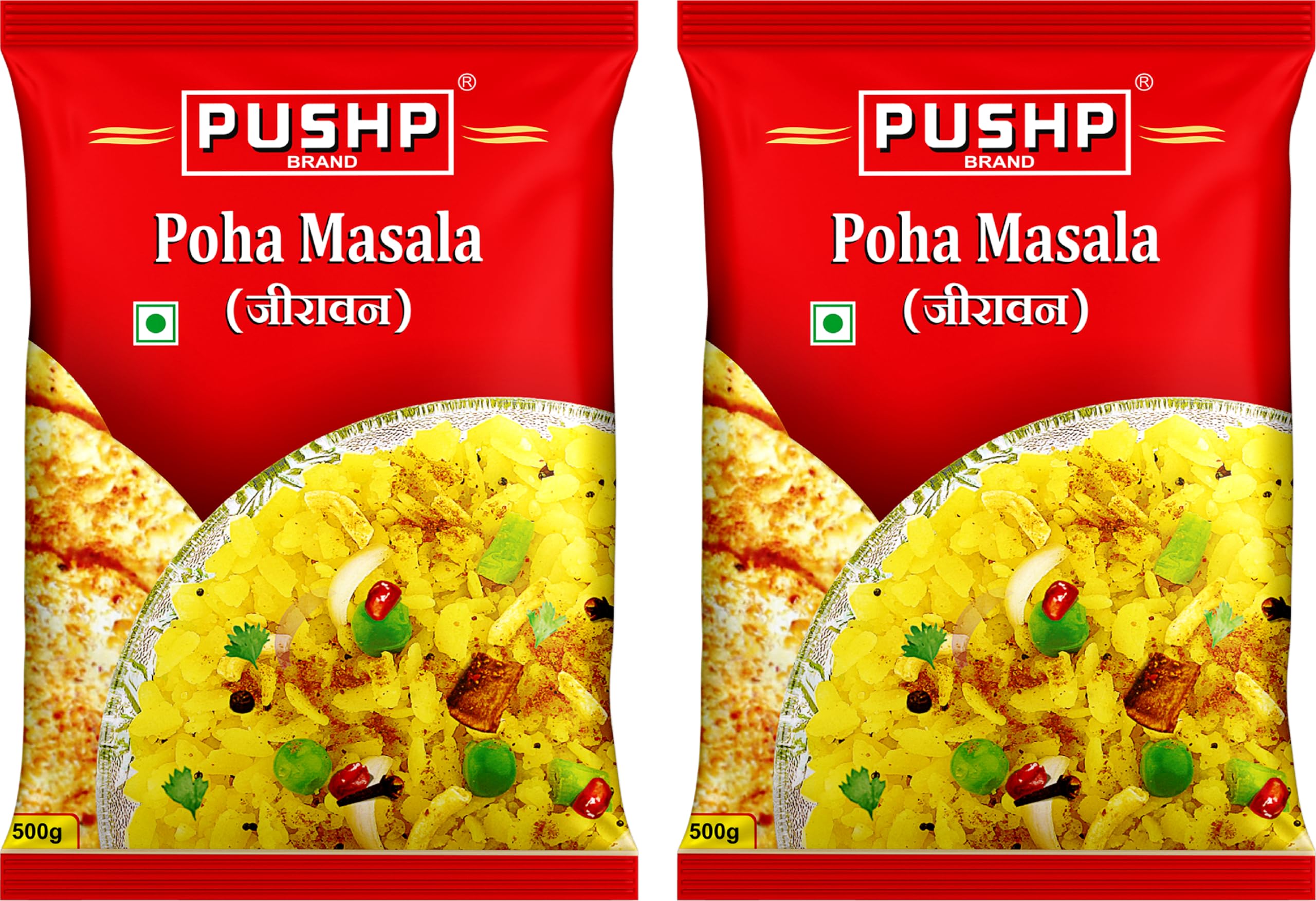 Pushp Jeeravan Masala | 500g Pouch | Indori Poha Masala | Indori-Style Spice Mix | Quality Blend | No Preservatives (Pack of 2)