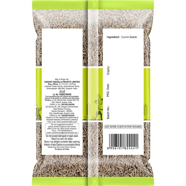 • Hygienic and Fresh Packaging “ Vasant Cumin Seeds are processed with care going through a triple-sifting process to ensure cleanliness and quality. They are packed in a hygienic environment to preserve their natural flavor and aroma ensuring consistent fr