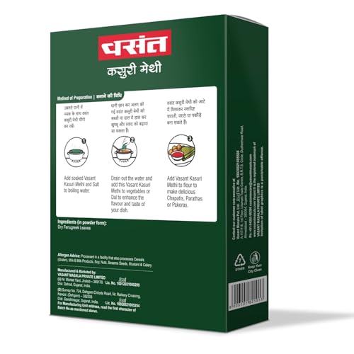 VASANT Masala Dry Fenugreek Leaves (Kasuri Methi). Kasuri Methi. Kasuri Powder. Indian Spices & Masala. Dry Fenugreek. Aids Digestion. Controls Diabetes. Vegetarian. 500 gm
