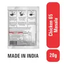 Chicken 65 is one immensely popular snack and starter recipe all across the country. A spicy deep-fried delicacy from down south Chicken 65 is undoubtedly one of the tastiest snacks that can be enjoyed at any time of the day. It is prepared by using boneless chicken pieces marinated with spices and are then deep-fried which can be enjoyed as a party starter or a routine snack item at your home. Our dhamakedaar chicken 65 masala will help you make this delicious spicy and authentic South Indian chicken dish that your friends and family are sure to shower you with compliments. Try it out today! Chicken 65 Cooking Instructions (Serves 2): Marinate 400g boneless chicken pieces with 3 tbsp ginger garlic paste 1 egg 8-10 curry leaves. Add 1 pouch Chicken 65 masala chicken pieces and stir fry for 10 min (no need to add salt). Deep fry chicken in hot oil till golden brown and crisp. Serve hot. Allergens: Contains Sesame Celery. May contain Cereals containing Gluten (Including Wheat) Peanuts Tree nuts Soy Musturd and Milk (dairy products).