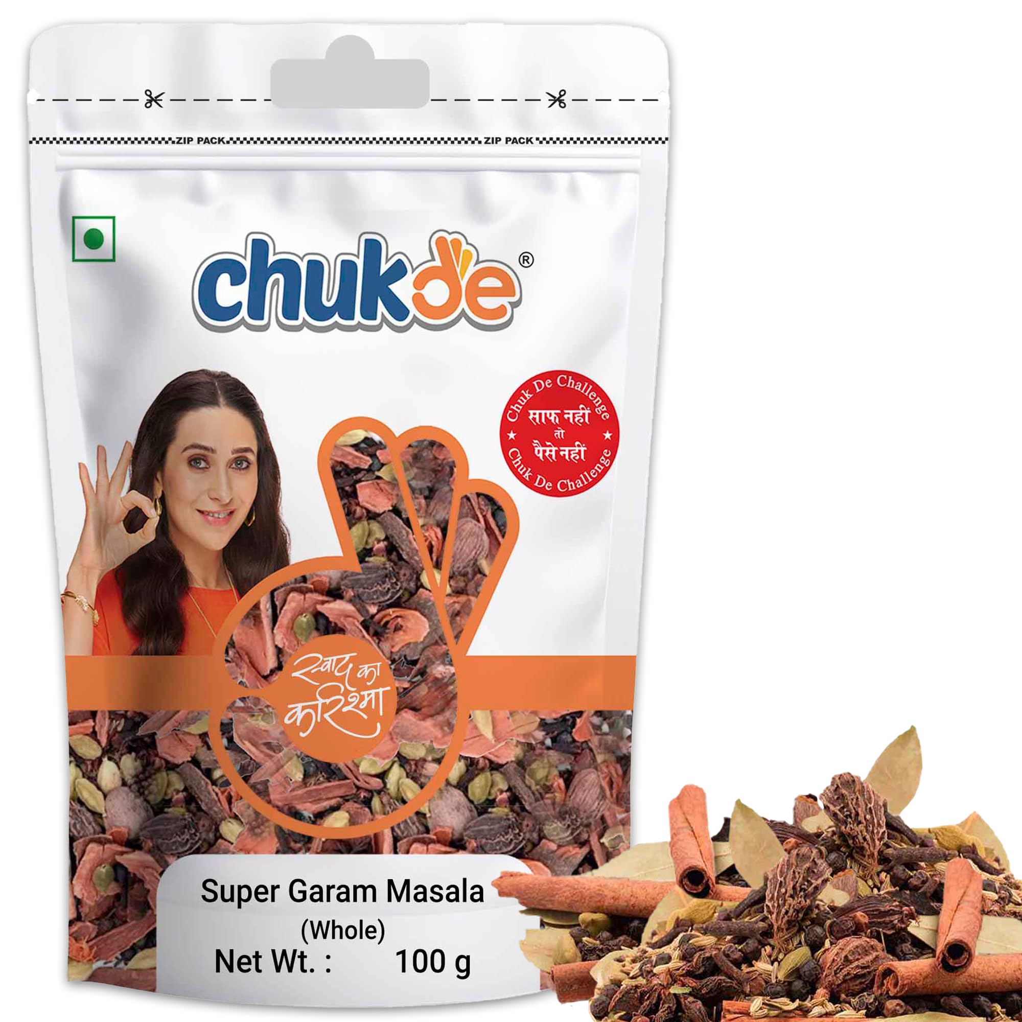 Chukde - Super Garam Masala - Whole Blended Spices - Blend of Whole Spices for Authentic Flavor - Freshly Packed for Aromatic Curries & Dishes - 100 Gram - Pack of 2