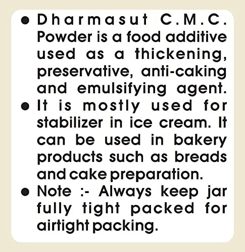 Dharmasut CMC Powder is a thickening agent that can be used to make ice cream frozen yogurt and other desserts. CMC powder works by absorbing water from the surrounding environment and increasing the thickness of the product. It also improves mouthfeel by providing a firm yet smooth texture to your food products. CMC powder is widely used in ice cream baking breads and cakes.