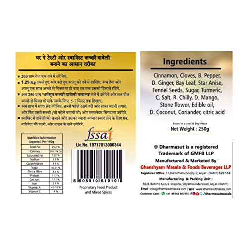 Dabeli Masala is an essential component of making Kutchi Dabeli and the homemade version of this spice mix tastes delicious. Our Kutchi Dabeli masala will add a taste to your life with this instant masala powder. This Gujarati dabeli masala powder contains mango powder red chilly dry ginger cinnamon big cardamom edible oil sugar & salt to provide real Indian authentic taste. Dabeli Masala Packet has no onions no garlic no artificial colours and helps you cook faster. Dharmasut Dabeli Masala is one of the famous dabeli masala powdersUse to make authentic Kutchi dabeli at home in kutch which makes your homemade dabeli flavorsome.