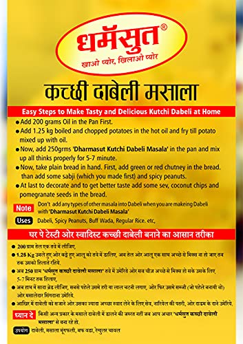 Dabeli Masala is an essential component of making Kutchi Dabeli and the homemade version of this spicemix tastes delicious. Our Kacchi Dabeli masala will add a taste to your life with this instant masala powder. This Gujarati dabeli masala powder contains mango powder red chilly dry ginger cinnamon big cardamom edible oil sugar & salt to provide real Indian authentic taste. Dabeli Masala Packet has no onions no garlic no artificial colours and helps you cook faster. Dharmasut Dabeli Masala is one of the famous dabeli masala powdersUse to make authentic Kutchi dabeli at home in kutch which makes your homemade dabeli flavorsome.