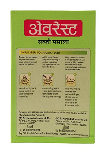 Everest Sabji Masala is just the right handy must-have for all those who simply don't have the time for elaborate cooking but would like to prepare delicious appetising vegetable dishes all the same
