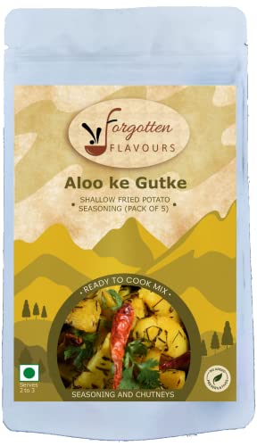 [About the dish] : The classic Potato Snacks of Uttarakhand â Aloo ke gutke are can be had in any way -a side dish or independently with tea. The Gutke has a distinct aroma and flavour due to the use of local spices. Our Offering: [Authentic Taste]: The Seasoning is made with high quality raw material to give you a hassle free cooking experience. [Ease of Cooking]: Just add the Masala while frying the potato wedges and enjoy your aloo ke gutke NO PRESERVATIVES NO ARTIFICIAL FLAVORS [Storage Directions]: Store in a cool and dry place. Serves: 2-3 Individuals