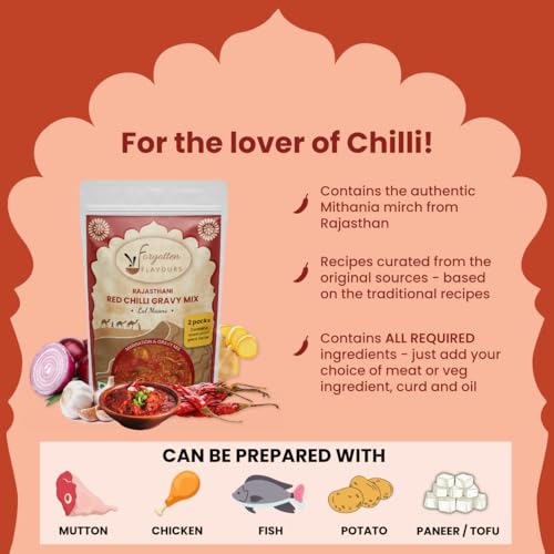 Lal Maans (literally âred meatâ) is a specialty of Rajasthan. The red colour is achieved by the usage of Mithania mirch a special Red chilly of Rajasthan. Historically this was prepared as part of evening feast. Our DIY mix will allow you to prepare the cuisine in simple 3 steps. Packet Contains : (1) Flavoring mix - Add this sachet along with the mutton while boiling. (2) Gravy mix - Mix with water to prepare the gravy. (3) Easy to follow Cooking Instruction. What you need : Forgotten Flavours Laal Maas Mix - 1 Pack. Mutton - 500g Fresh Curd - 100g Mustard Oil - 1 Tablespoon Ghee - 2 Tablespoon