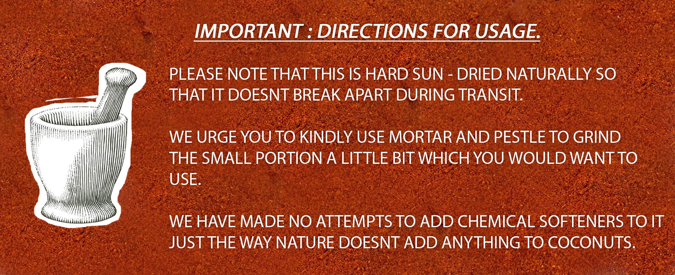 Long shelf life; Just break off a small portion grind a bit with mortar and pestle ( please remember that its a dried kind of cake)and mix in water - the solution is ready to use in cooking.