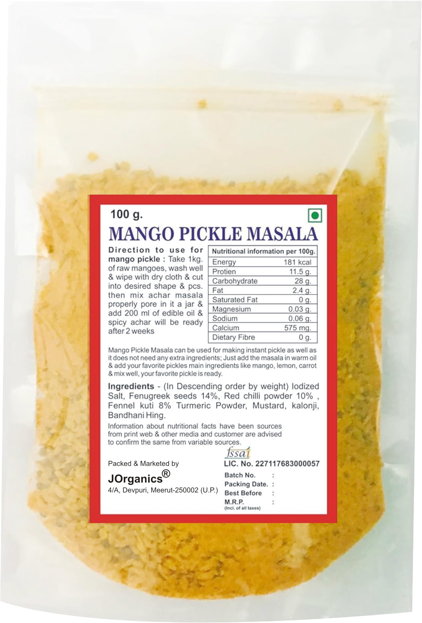 JOrganics Mango Pickle Masala (Aam ka Masala) Mix Vegetables Pickle Masala 100gm
