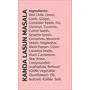Red Chillies Coriander Seeds Sesame Seeds Cumin seeds Mustard Seeds Star Anise Poppy Seeds Clove Cinnamon Black Pepper Cardamom Refined Edible Vegetable (Sunflower) Oil Iodized Edible Salt.