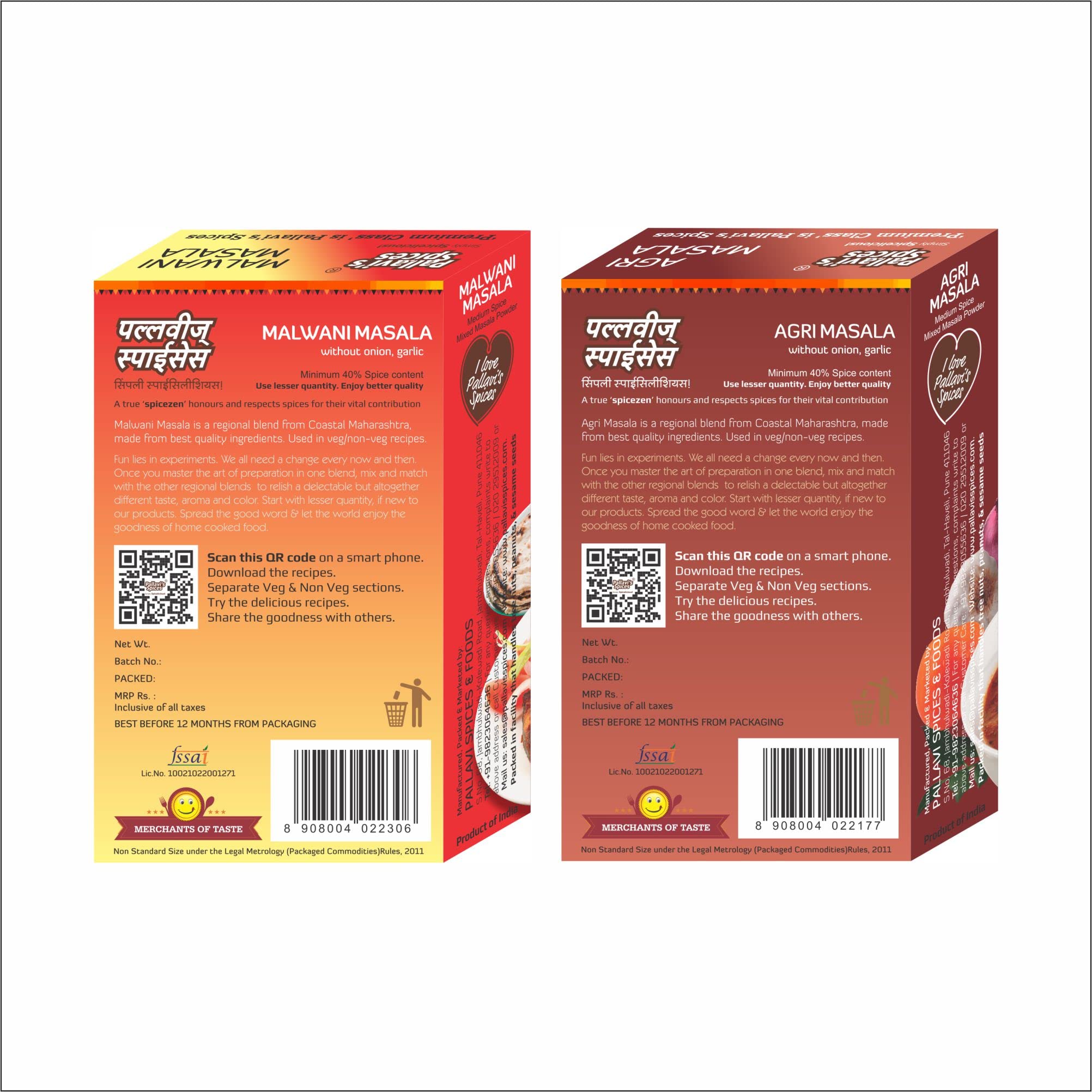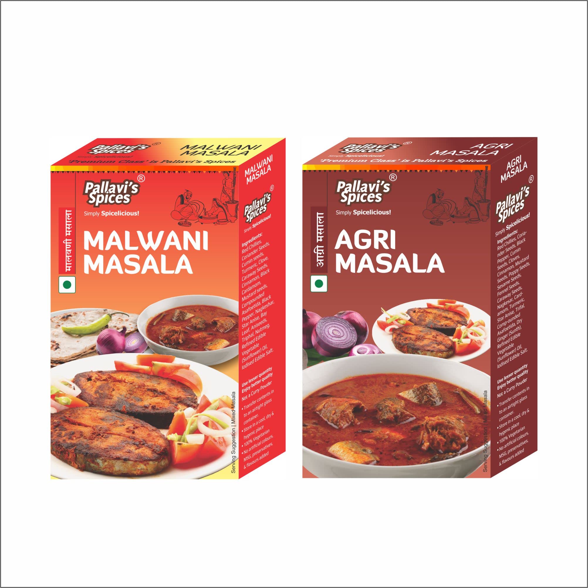 Pallavi's Spices Agri Masala and Malwani Masala 200g (Pack of 4) 2 each