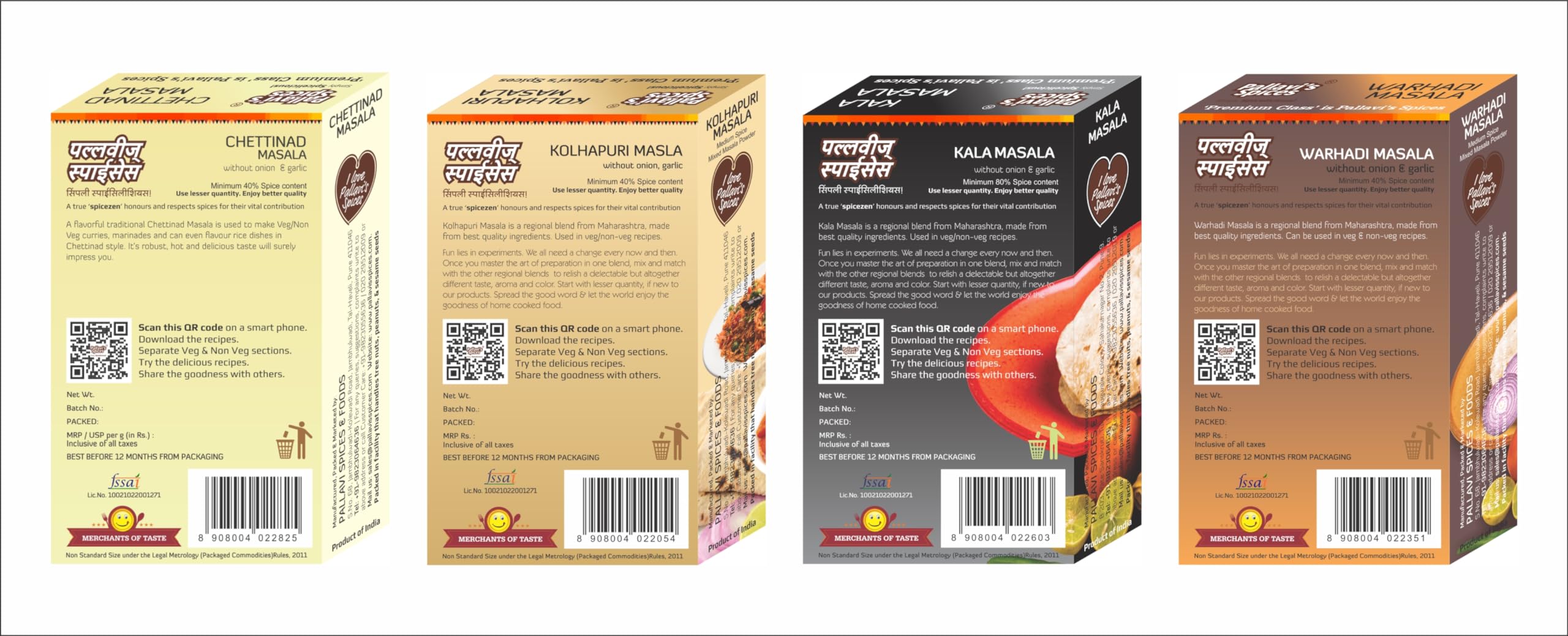 Pallavi's Spices Combo Pack Of Chettinad + Kolhapuri + Kala + Warhadi 200gm (Pack Of 4)