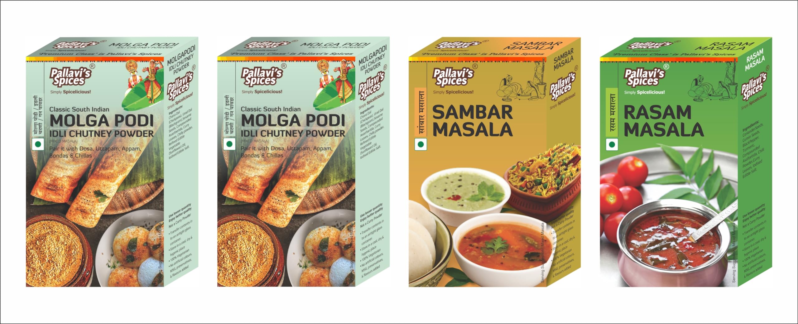 Pallavi's Spices combo pack of Molgapodi (100g x 2) + Sambar masala (50gx1) + Rasam masala (50gx1) 300 gm (pack of 4)