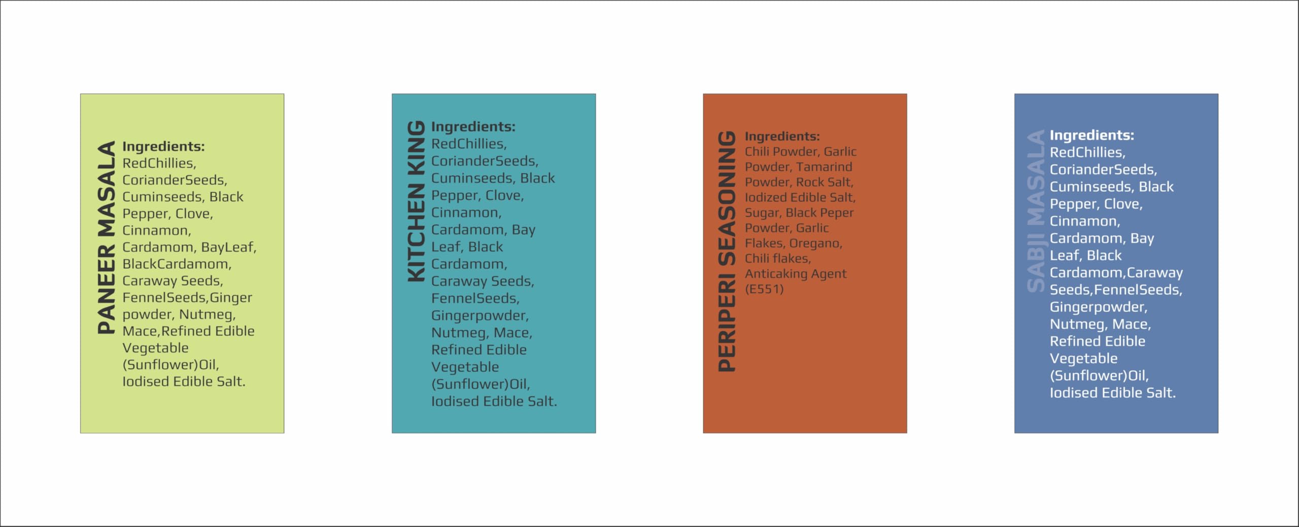 Spice Mastery Combo Pack featuring an exquisite selection of four essential masalas: Peri Peri Masala Sabji Masala Kitchen King Masala and Paneer Masala. This versatile combo pack is designed to elevate your culinary creations with a rich blend of flavors and aromas. This combo pack ensures that you have the perfect seasoning for a wide range of dishes from fiery and tangy to rich and savory. With our Spice Mastery Combo Pack you can effortlessly bring authentic and diverse flavors to your kitchen making every meal a delightful culinary adventure.
