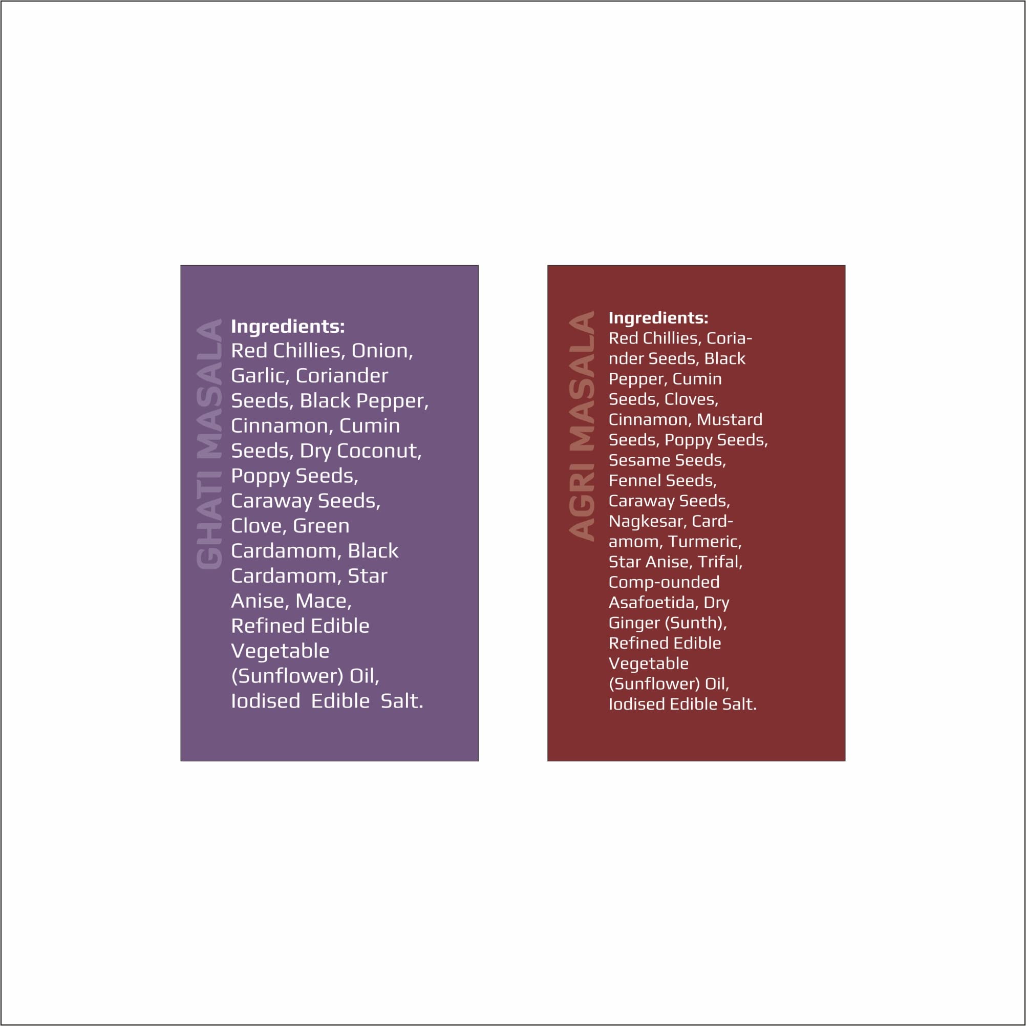 2 packs of Ghati Masala and 2 packs of Agri Masala 50g each