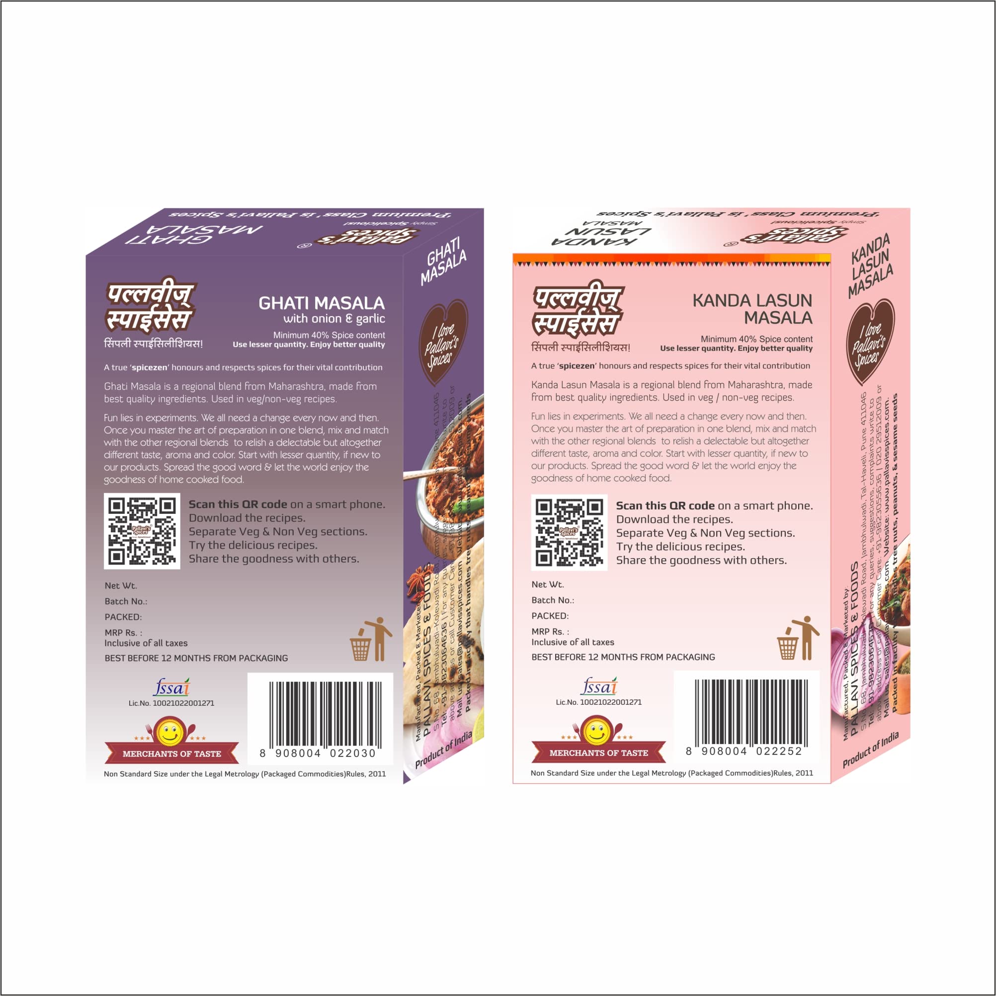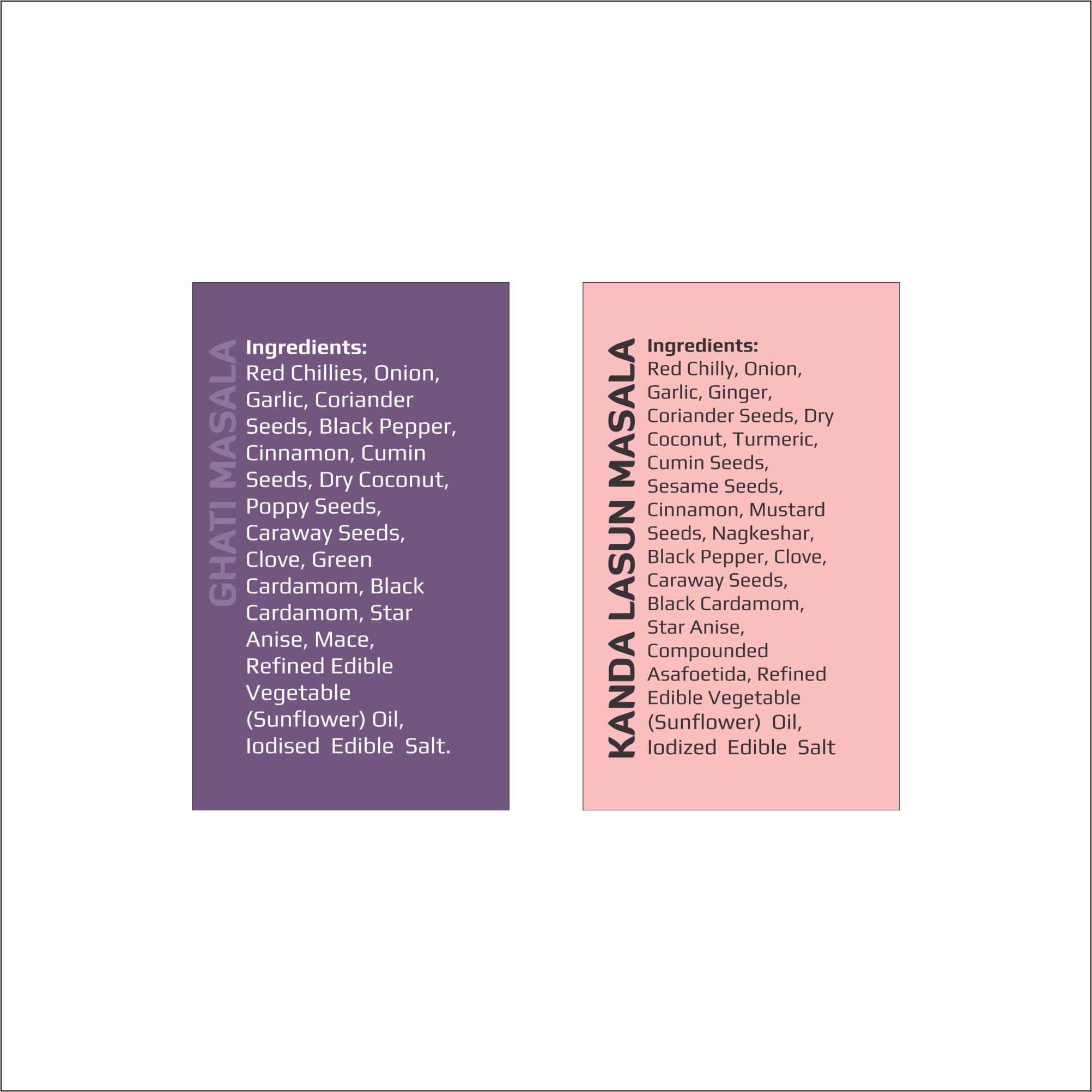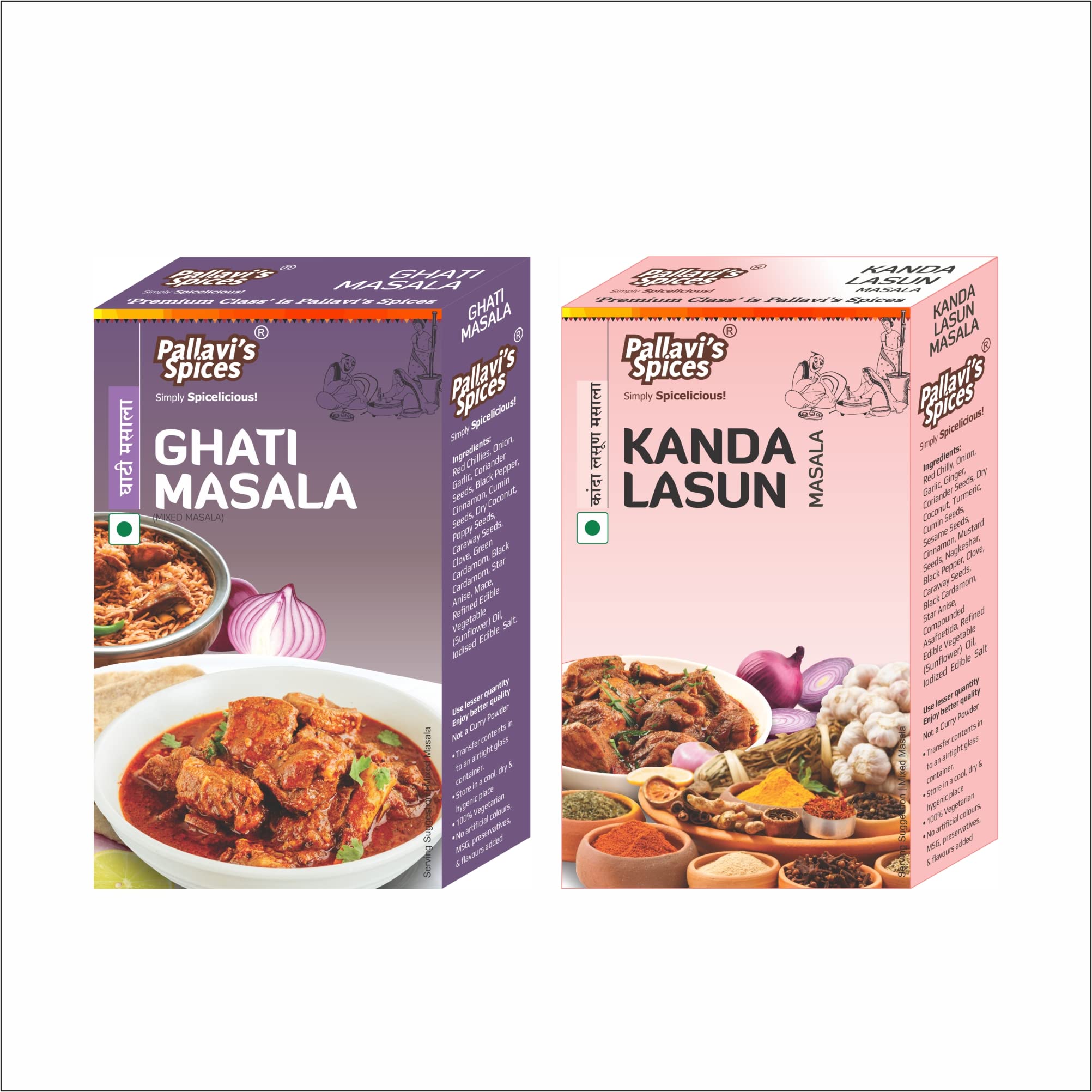 2 packs of Ghati Masala and 2 packs of Kanda Lasun Masala 50g each