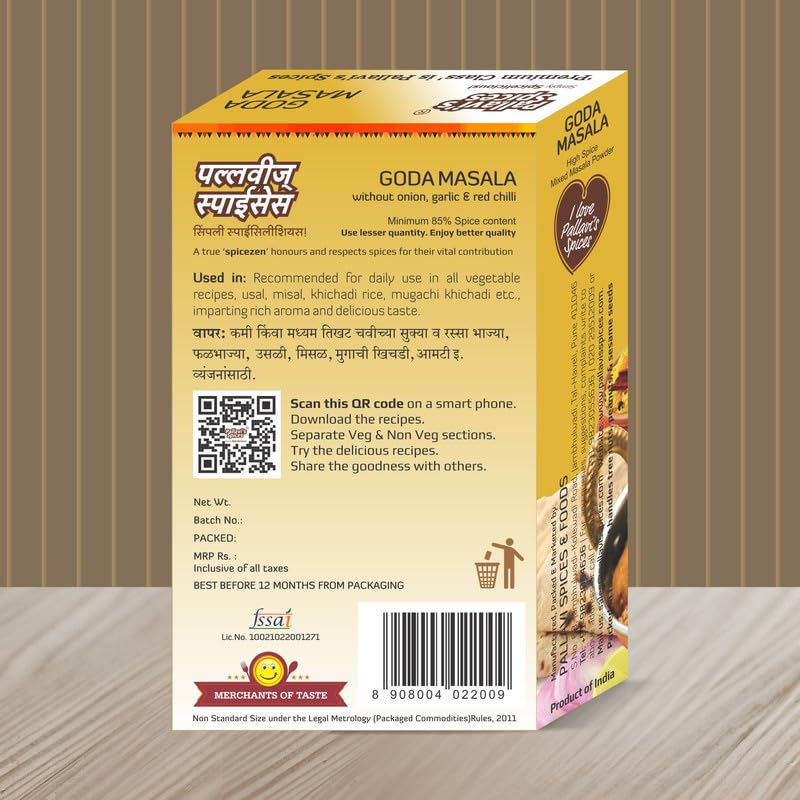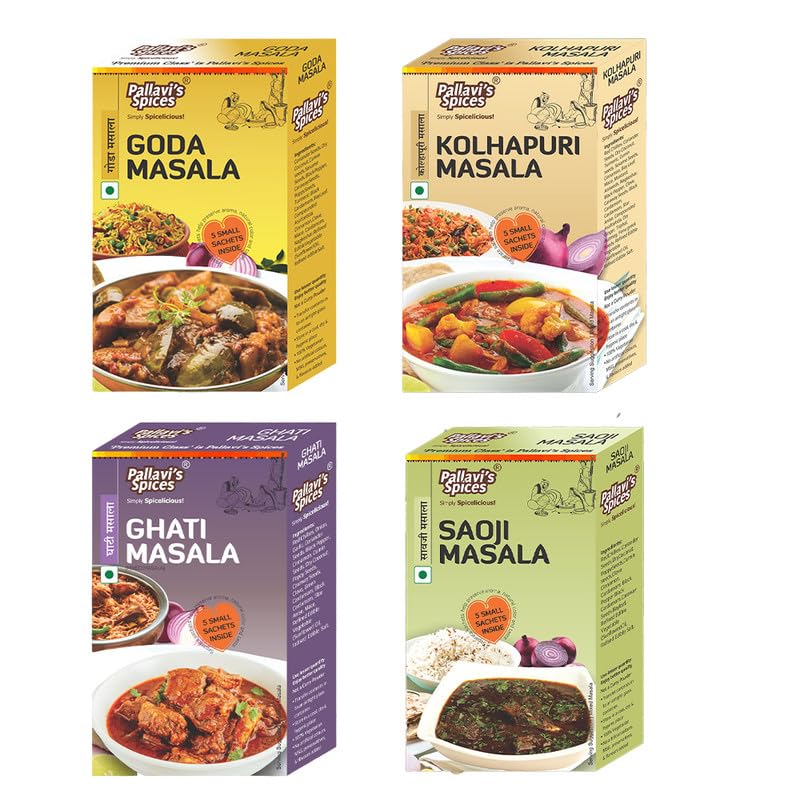 Pallavi's Spices Goda Masala (50gx1) Kolhapuri Misal (50gx1) Ghati Masala (50gx1) and Saoji Masala (50gx1) | No Artificial Color | No Preservatives | Indian Masala | Pack of 4