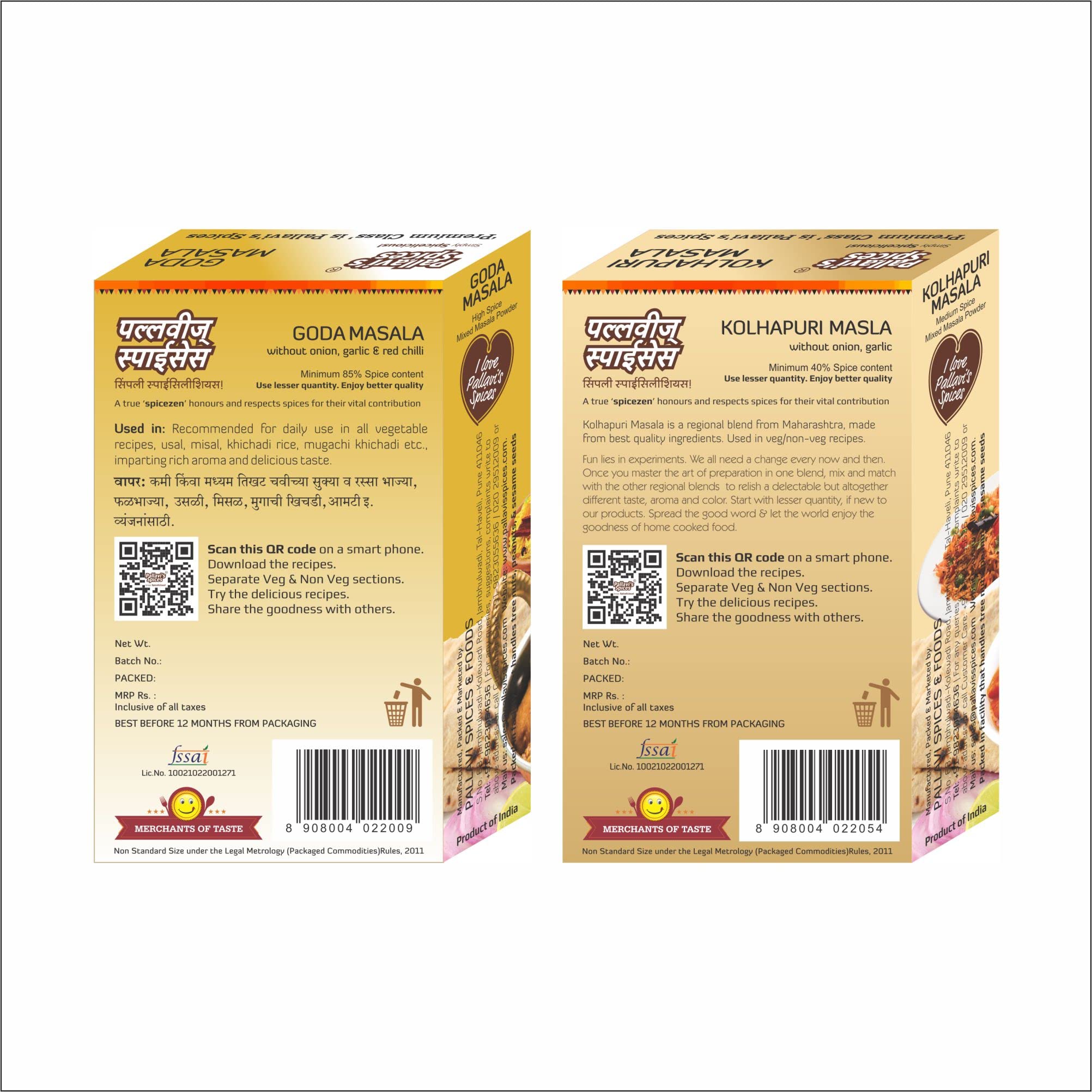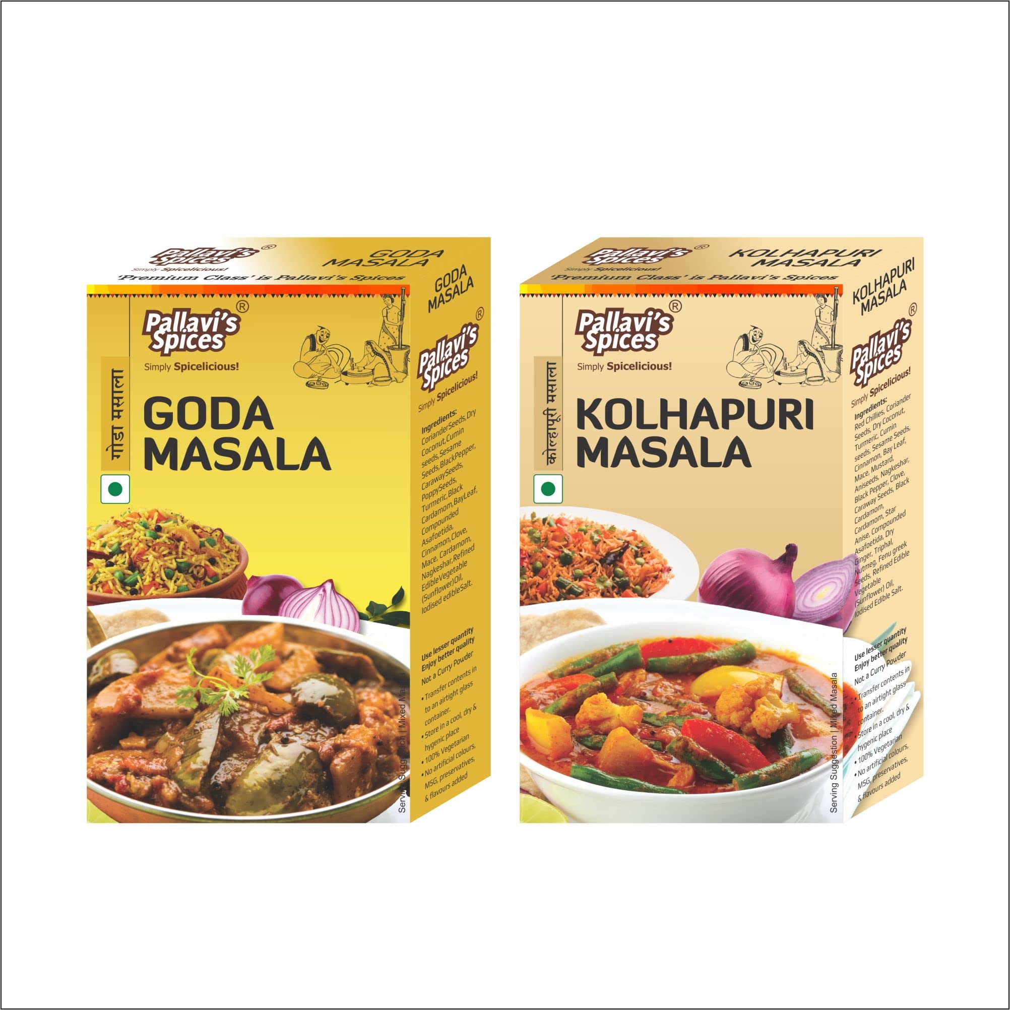 Pallavi's Spices Goda Masala and Kolhapuri Masala 200g (Pack of 4) 2 each