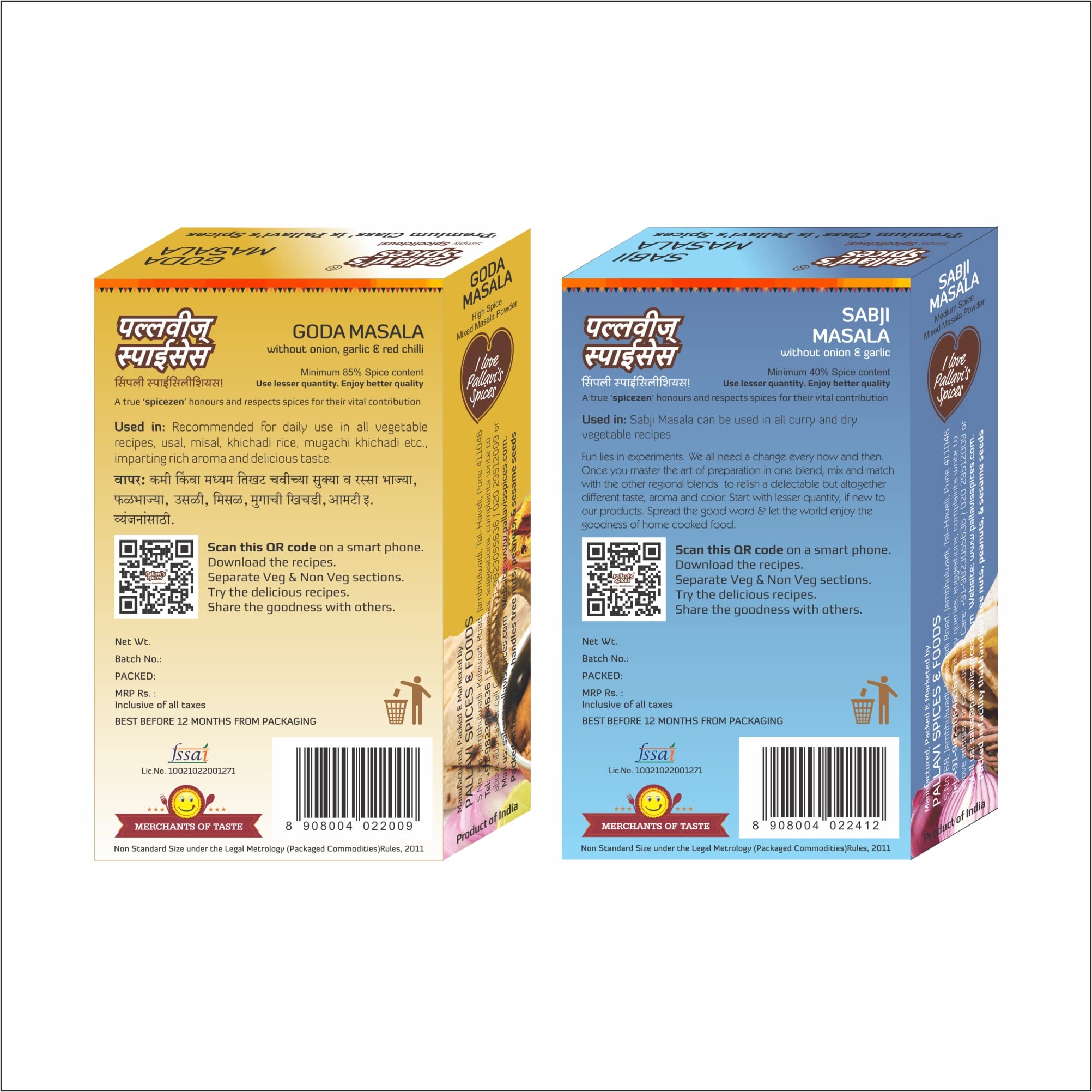 Pallavi's Spices Goda Masala and Sabji Masala 200g (Pack of 4) 2 each