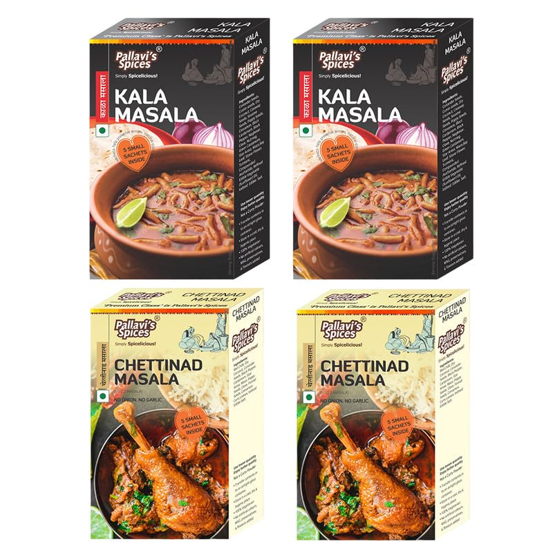 Pallavi's Spices Kala Masala (50gx2) Cetttinad Masala (50gx2) | No Artificial Color | No Preservatives | Indian Masala | Pack of 4