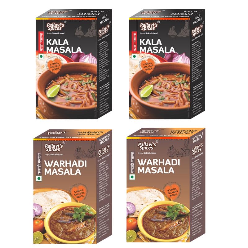 Pallavi's Spices Kala Masala (50gx2) Warhadi Masala (50gx2) | No Artificial Color | No Preservatives | Indian Masala | Pack of 4