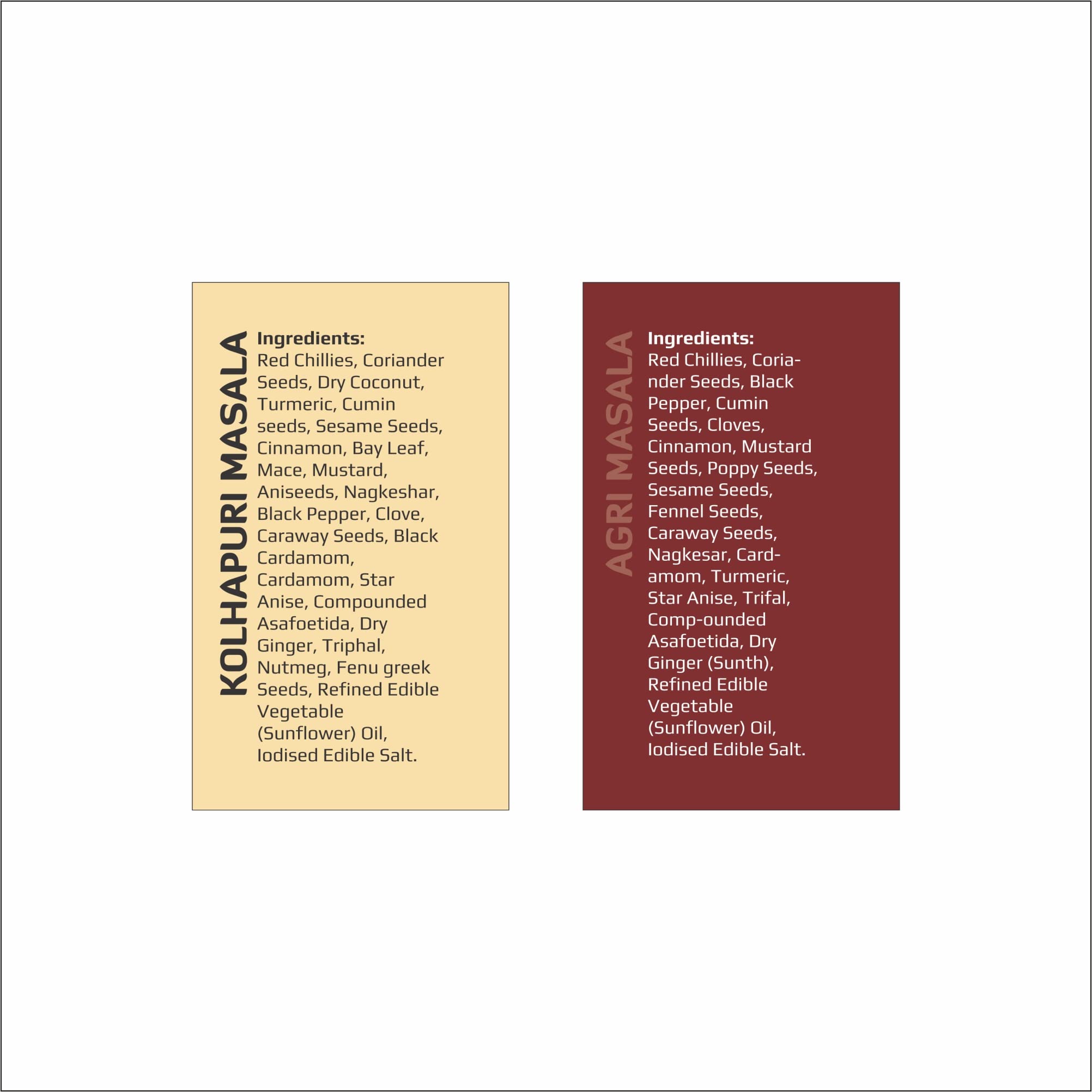 2 pack of Kolhapuri Masala and 2 packs of Agri Masala 50g each