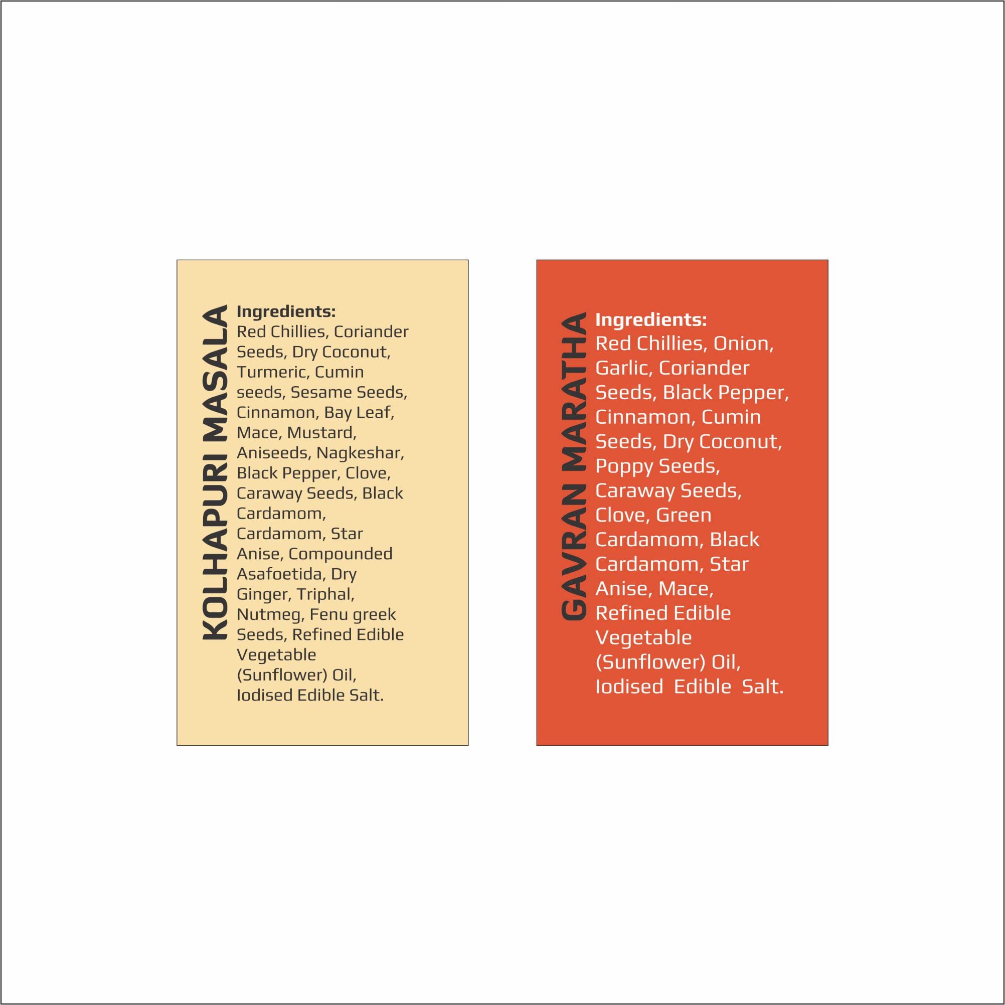 2 packs of Kolhapuri masala and 2 packs of Gavran Maratha Masala 50g each