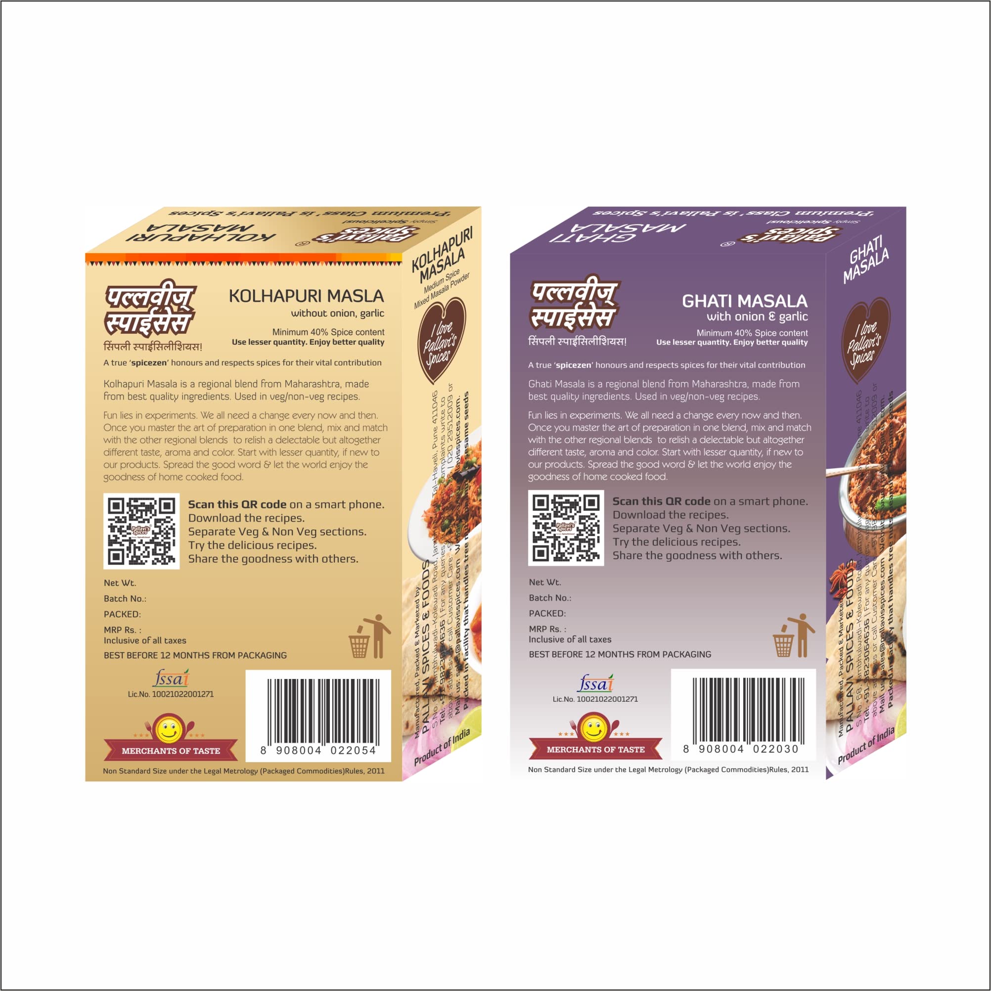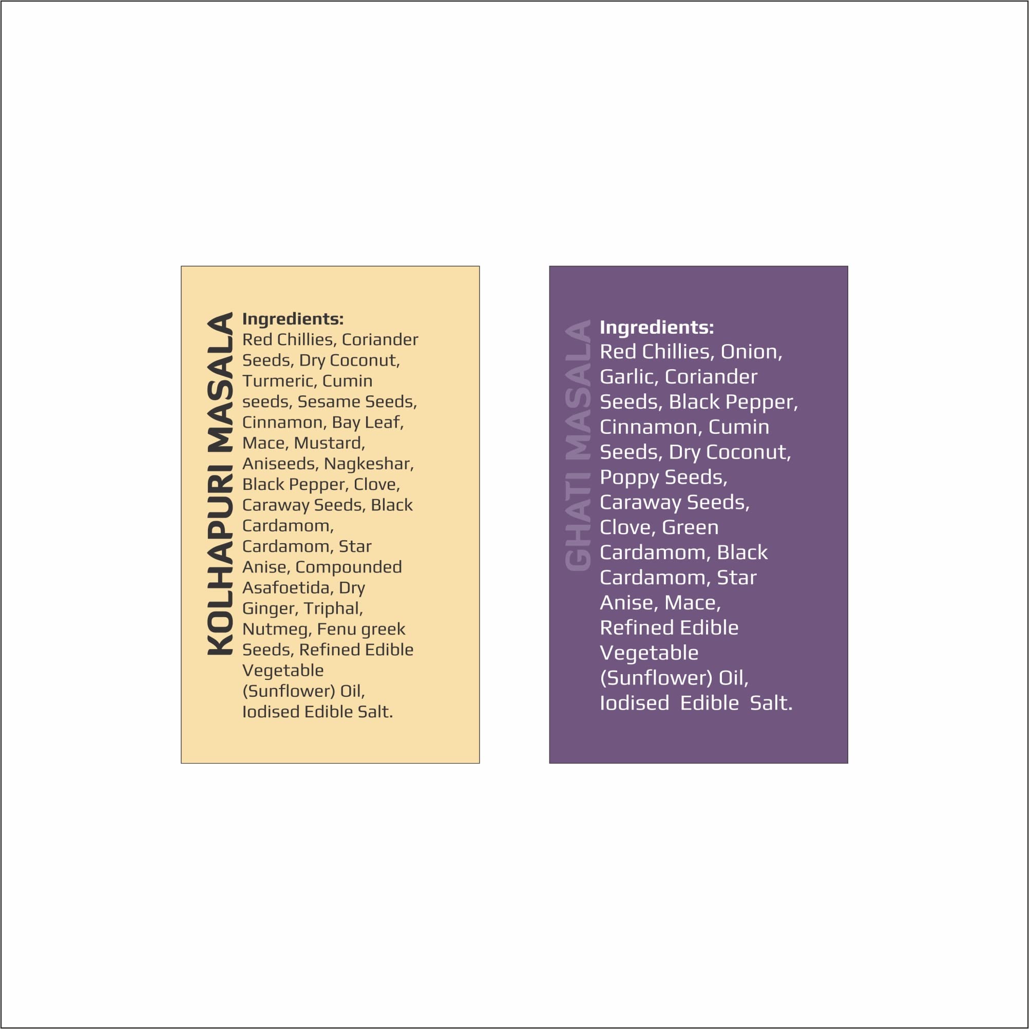 2 packs of Kolhapuri Masala and 2 packs of Ghati Masala 50g each