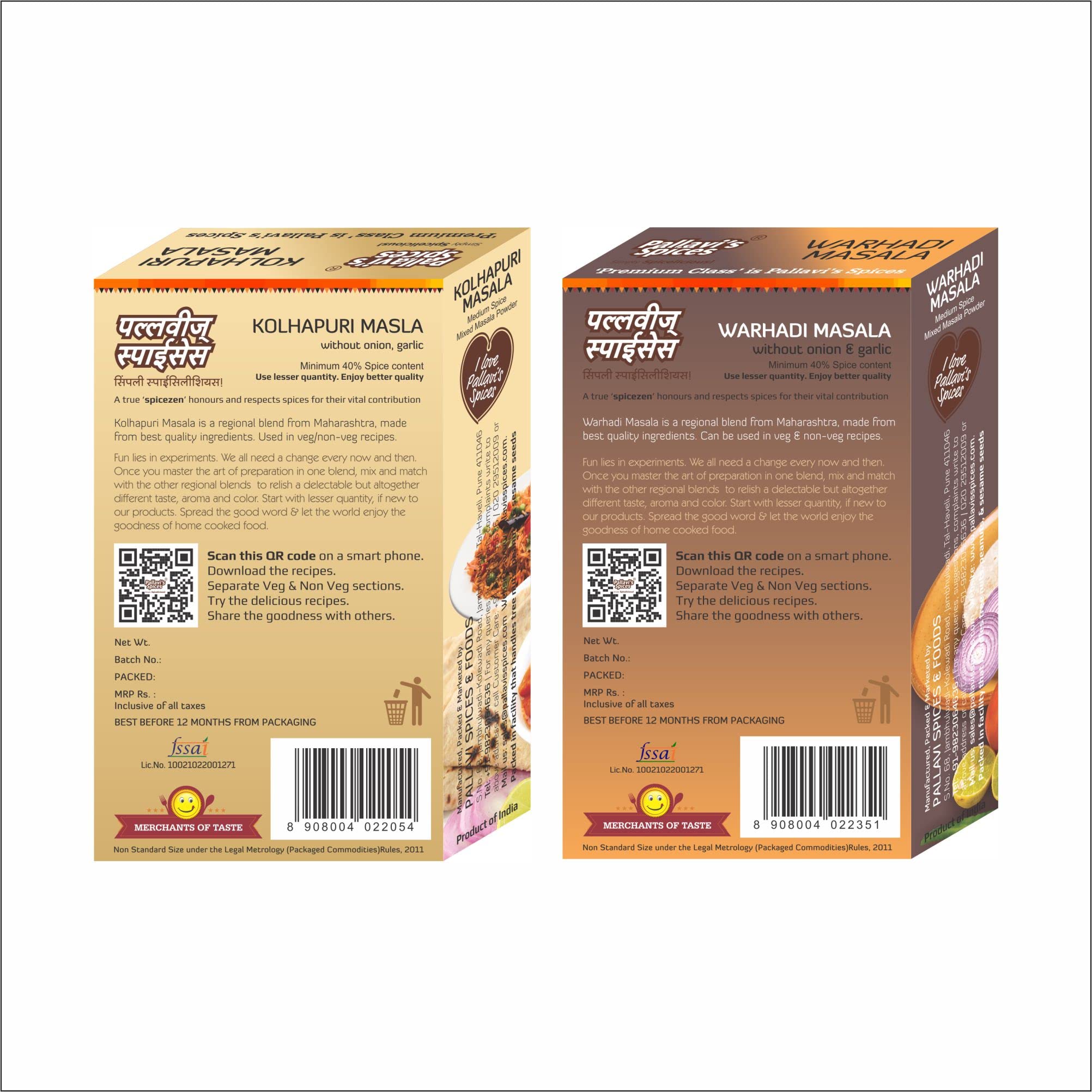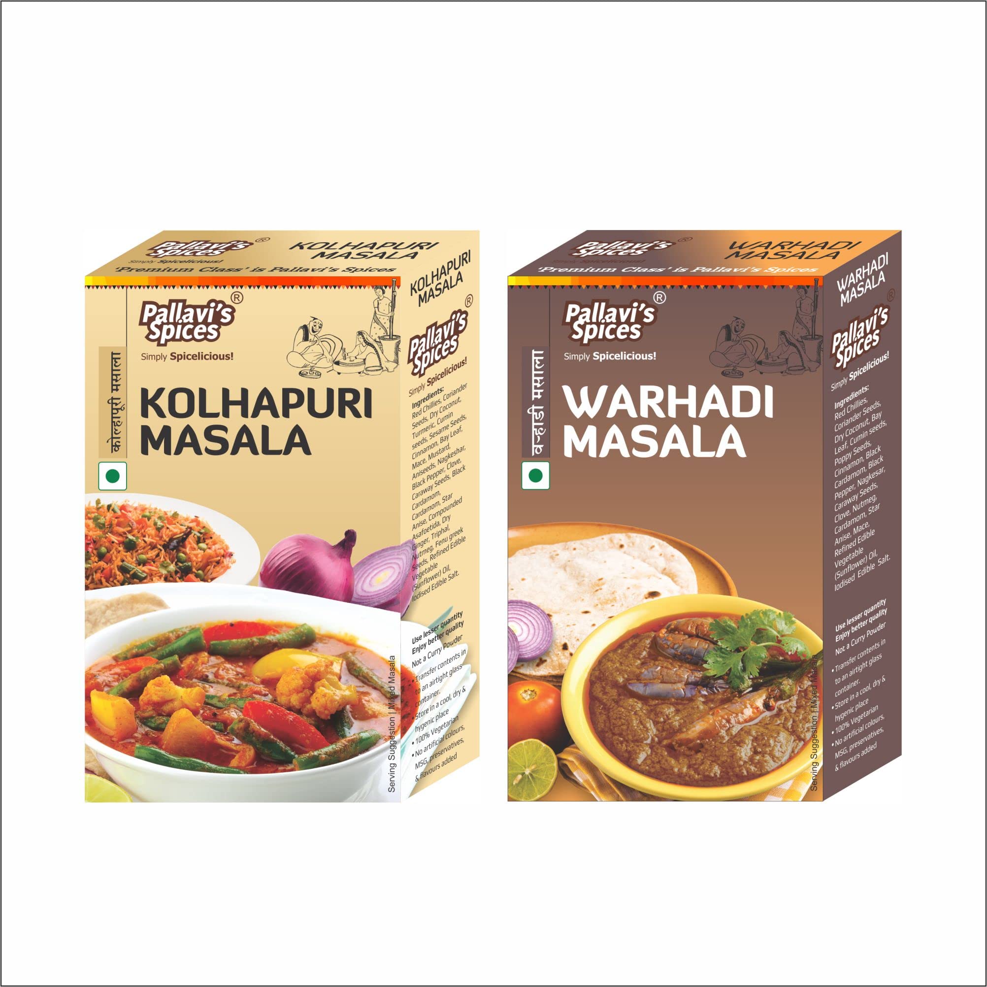 Pallavi's Spices Kolhapuri Masala and Warhadi Masala 200g (Pack of 4) 2 each